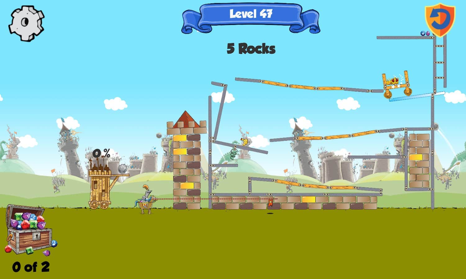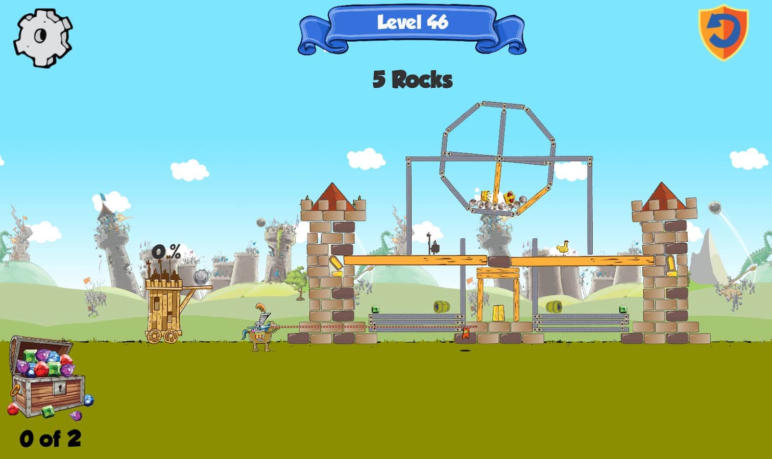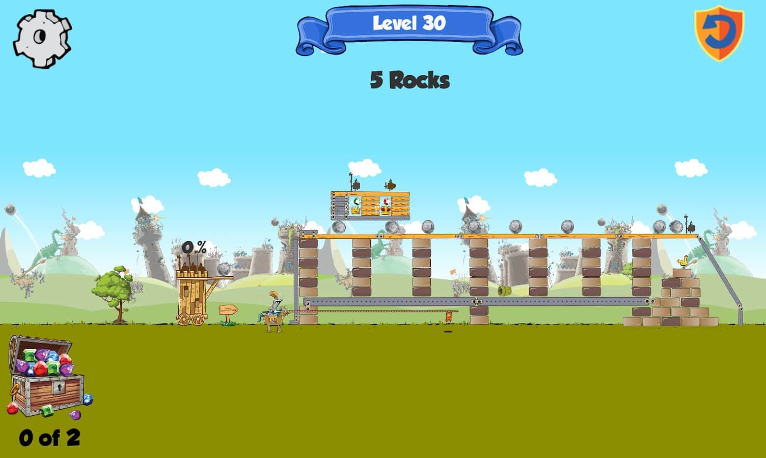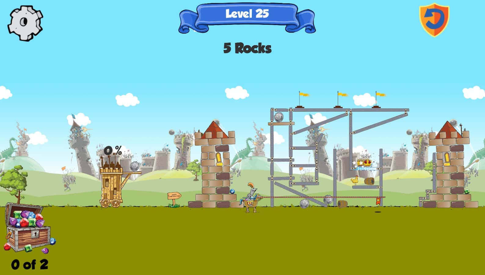 Kastles - Caos Medieval es un emocionante juego de rompecabezas para Android donde conducirás al rey y la reina de tu castillo. Eres el legítimo gobernante del Reino, pero tu lugar fue tomado por impostores y no tienes más opción que destruirlos. Corre hacia las piedras del castillo con una catapulta y destruye la fortaleza, tratando de alcanzar al rey. Tan pronto como destruyas una fortaleza, el rey y la reina huyen a otra, y es tan difícil para ti. Conecta tu imaginación e ingenio y avanza a través de los muchos niveles y destruye al rey. El juego se basa en las leyes de la física y es adecuado para cualquier edad.