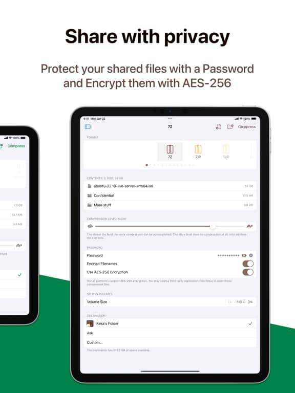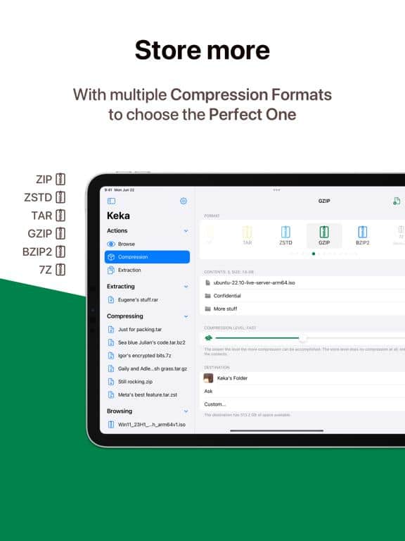 Presentamos Keka: un archivador de archivos simple pero poderoso que hará tu vida más fácil y conveniente. Con Keka, puedes comprimir un número ilimitado de archivos en varios formatos como 7Z, ZIP, TAR, ZSTD, GZIP, BZIP2 y AppleArchive. No más limitaciones en tamaño o número de archivos: Keka puede manejar lo que le eches. Pero Keka no se trata solo de compresión. También se encarga de la seguridad de tus datos. Puedes cifrar tus archivos comprimidos para garantizar la confidencialidad y protección al almacenar e intercambiar archivos. Ten la certeza de que tu información permanecerá segura.