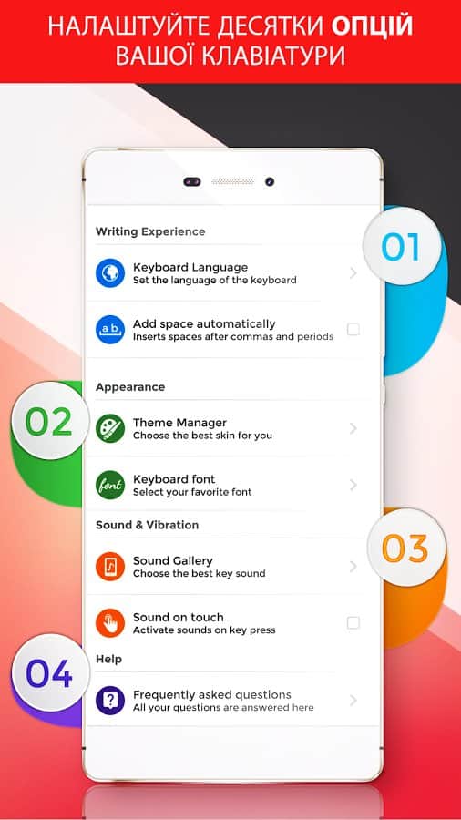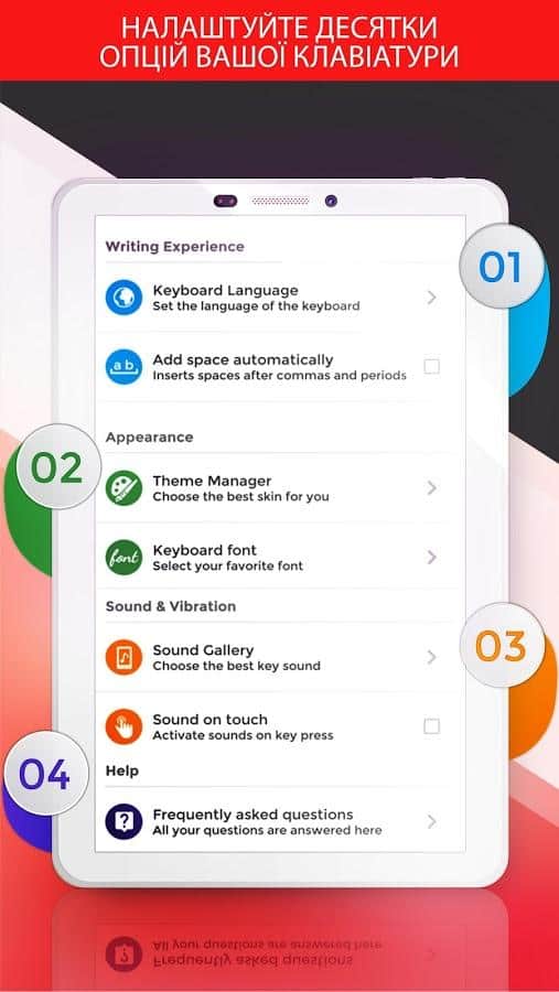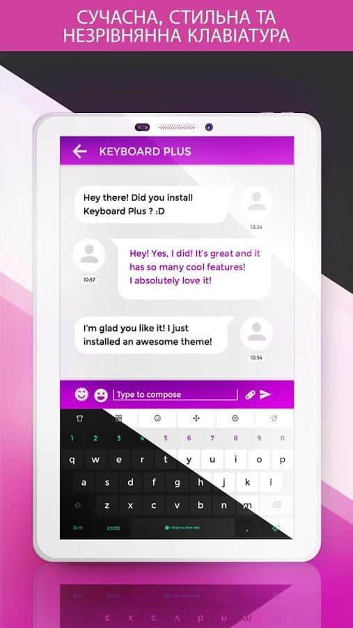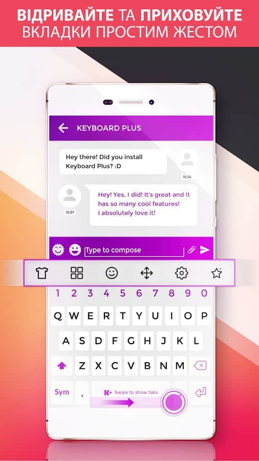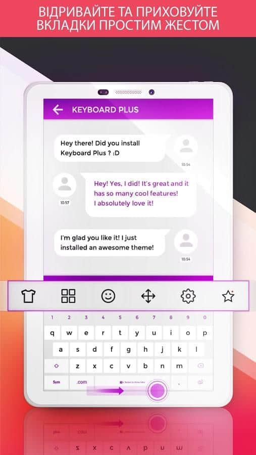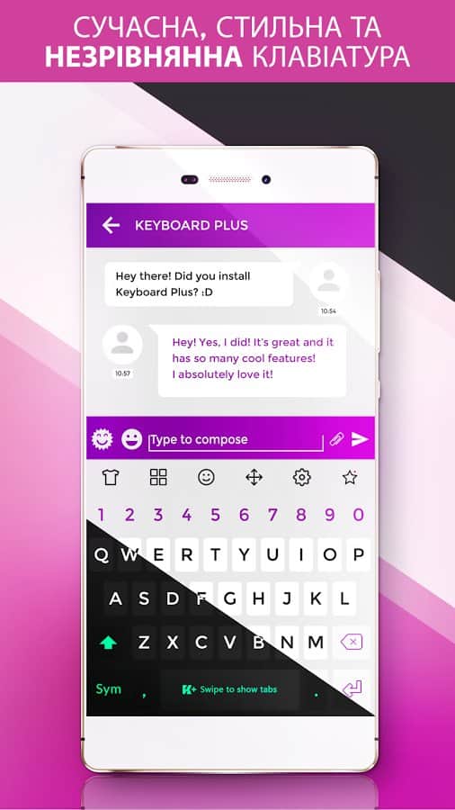 Keyboard Plus – un teclado sencillo y al mismo tiempo funcional para el día a día del mismo desarrollador. El teclado incluye un paquete de varios emoticonos que estarán disponibles para ti con un solo clic. Gran selección de temas que puedes cambiar cada día, diferentes distribuciones de teclado y acceso rápido a las funciones que necesitas. Todo se hace de manera simple, rápida y con buen gusto. El teclado puede cambiar entre diferentes distribuciones: elige la que más te guste. Hay la posibilidad de cambiar el tamaño de la fuente, lo cual será necesario para aquellos que tienen problemas de visión. Cuenta con una animación emergente.