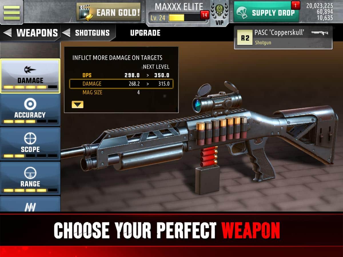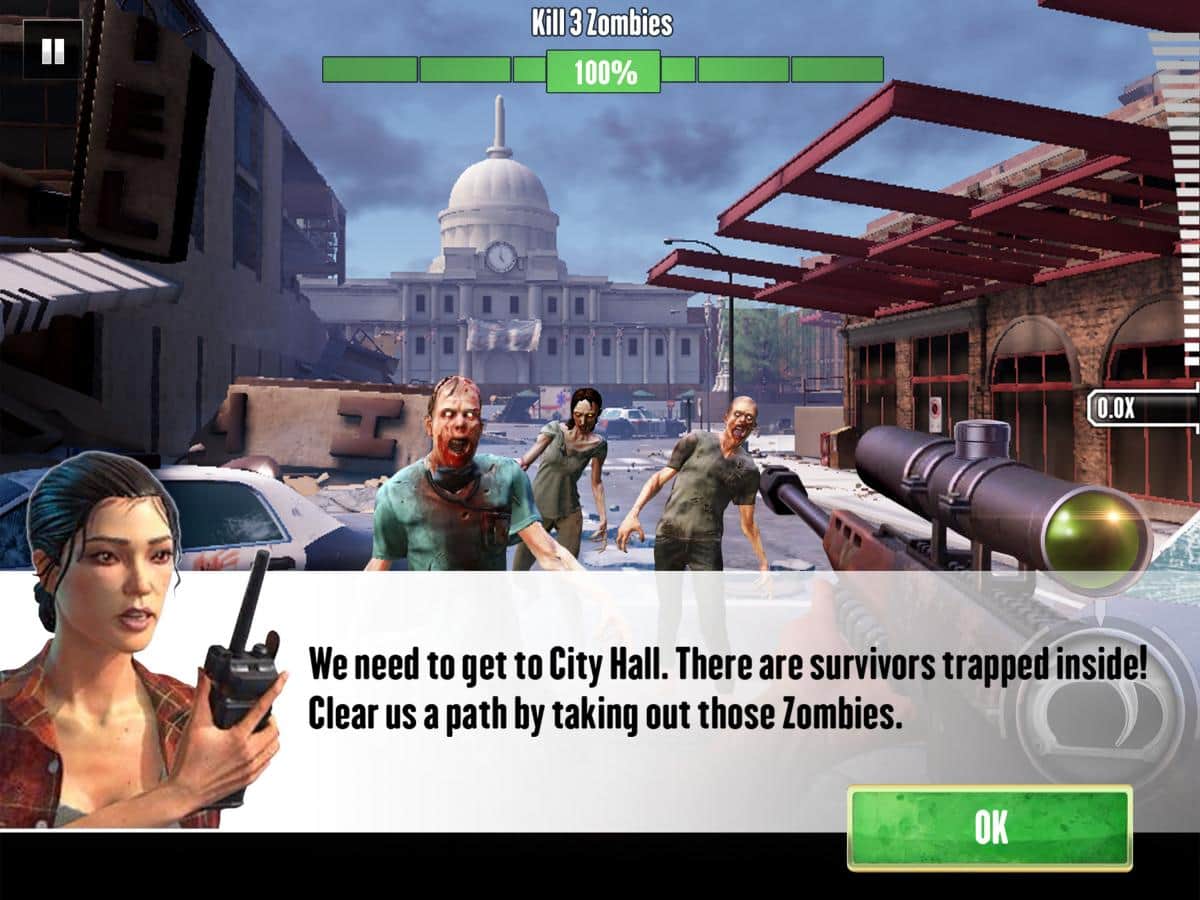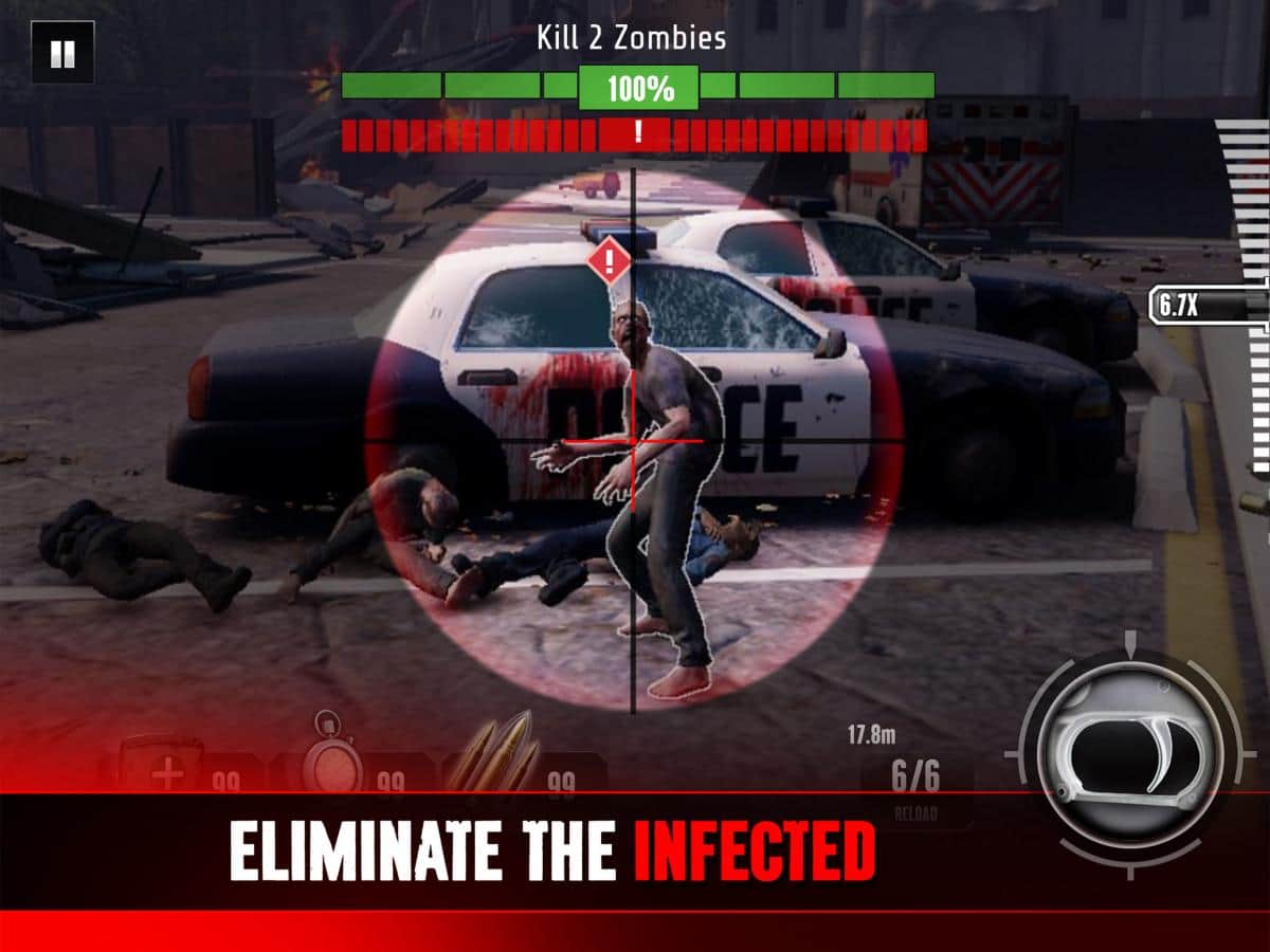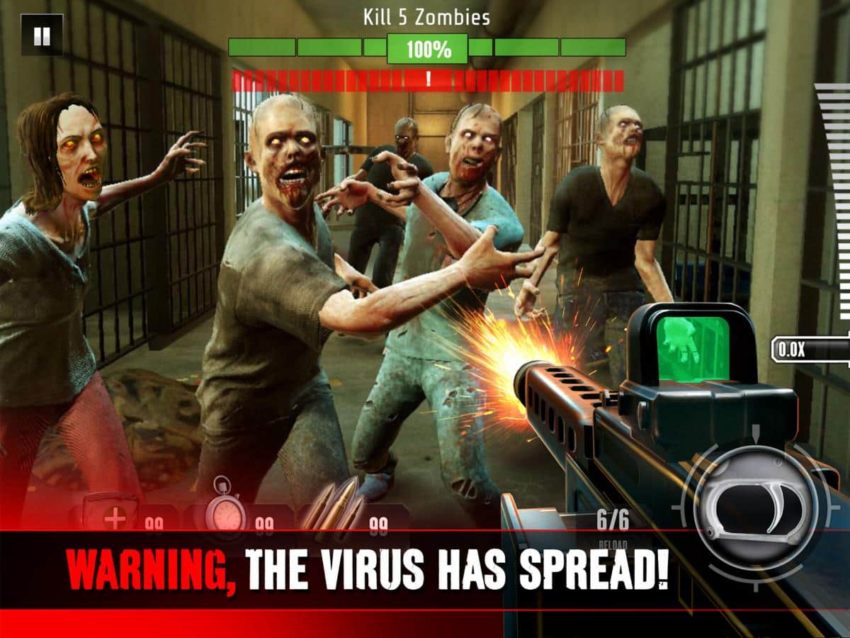 Dispara a los zombis con ametralladoras, escopetas, rifles de francotirador e incluso subfusiles.