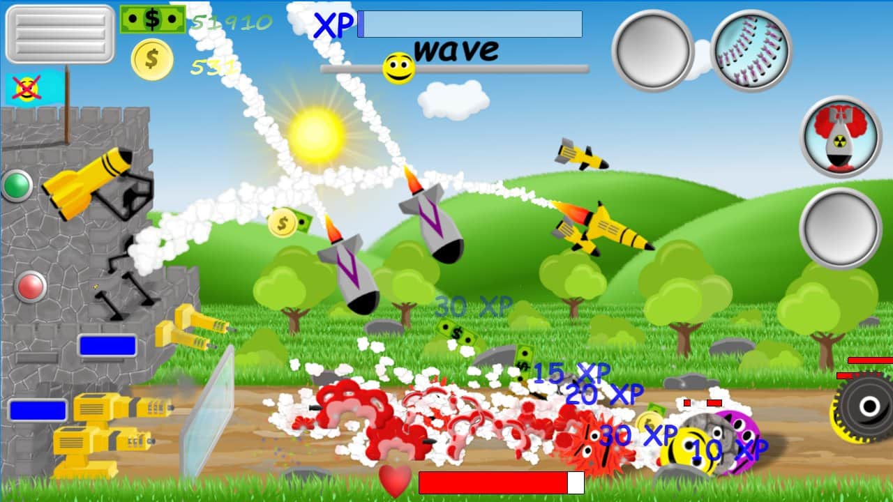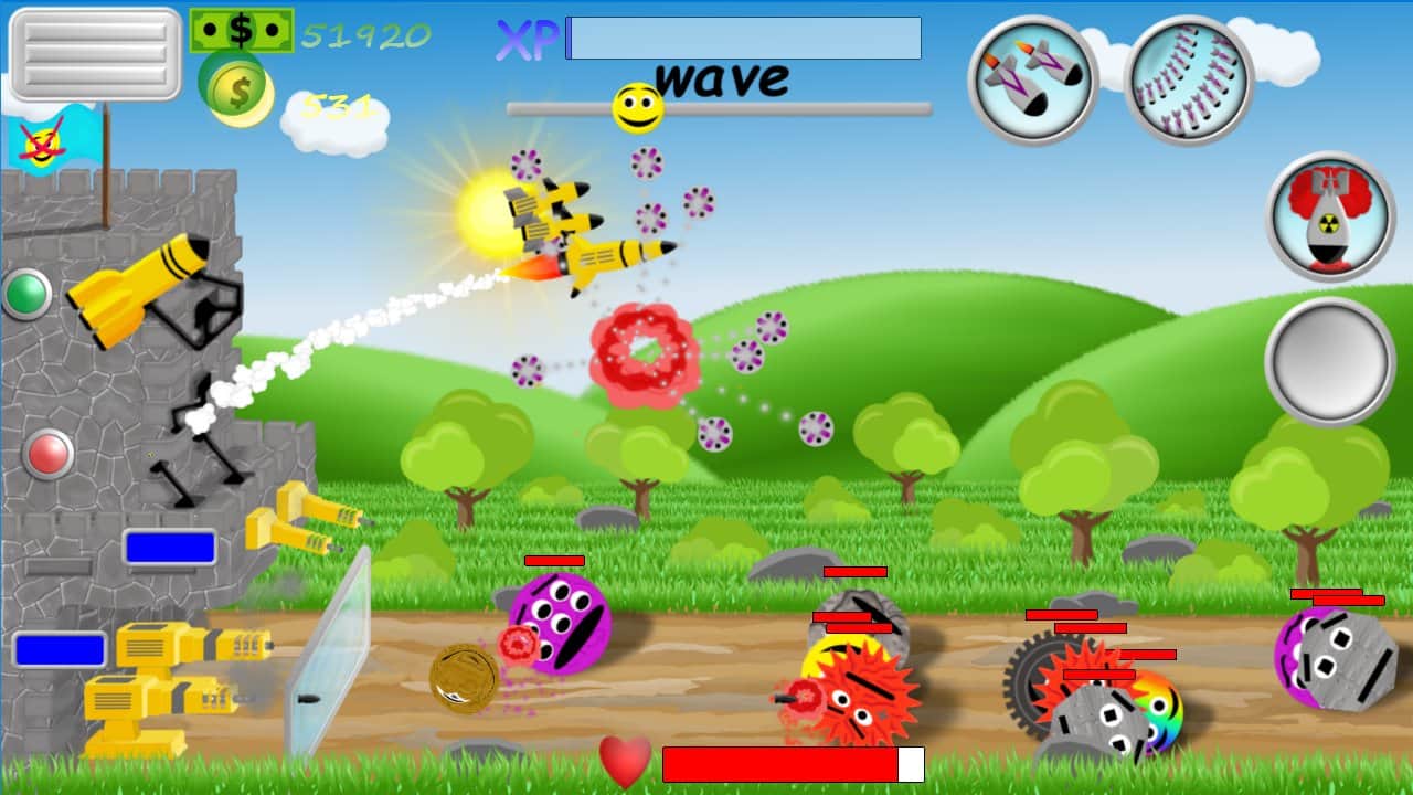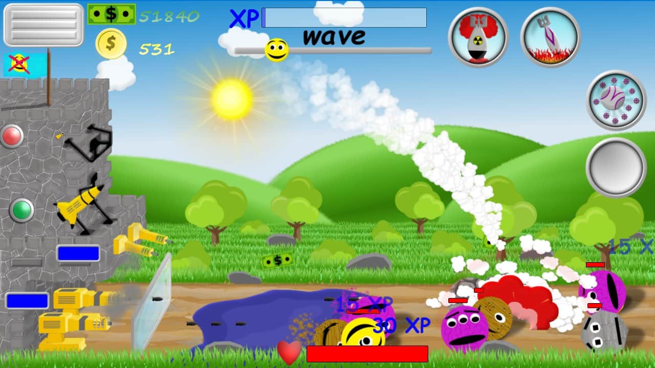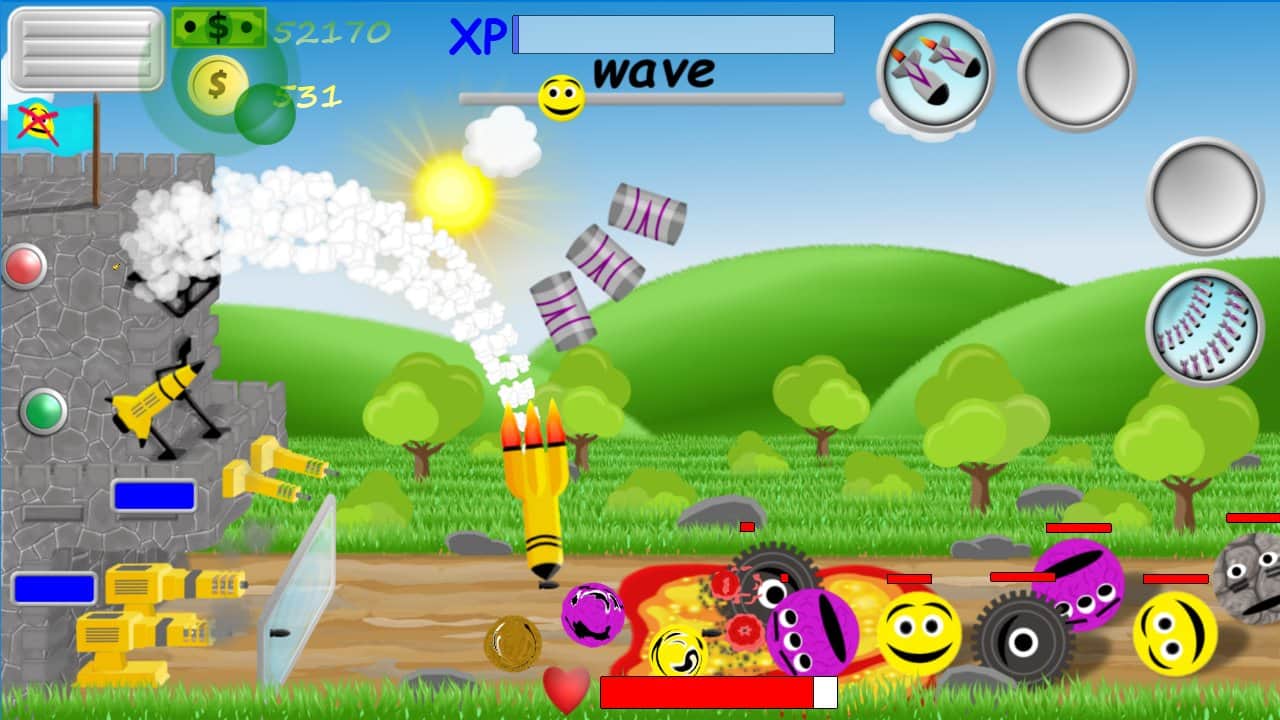 KillKamm defensa lite es el juego del género de defensa de torres en Android donde tu tarea será sobrevivir en el juego el mayor tiempo posible. Mantén la defensa del castillo y no dejes que los emoticonos penetren más allá de la muralla. Supera niveles fascinantes, mejora tus habilidades y actualiza tus armas. Serás atacado por una horda interminable de enemigos y necesitas mejorar y descubrir nuevas armas, y abrir ataques aéreos para destruir varios emoticonos. Al final de cada ronda habrá puntuación, sube lo más alto posible en las tablas de clasificación y logra excelentes resultados.