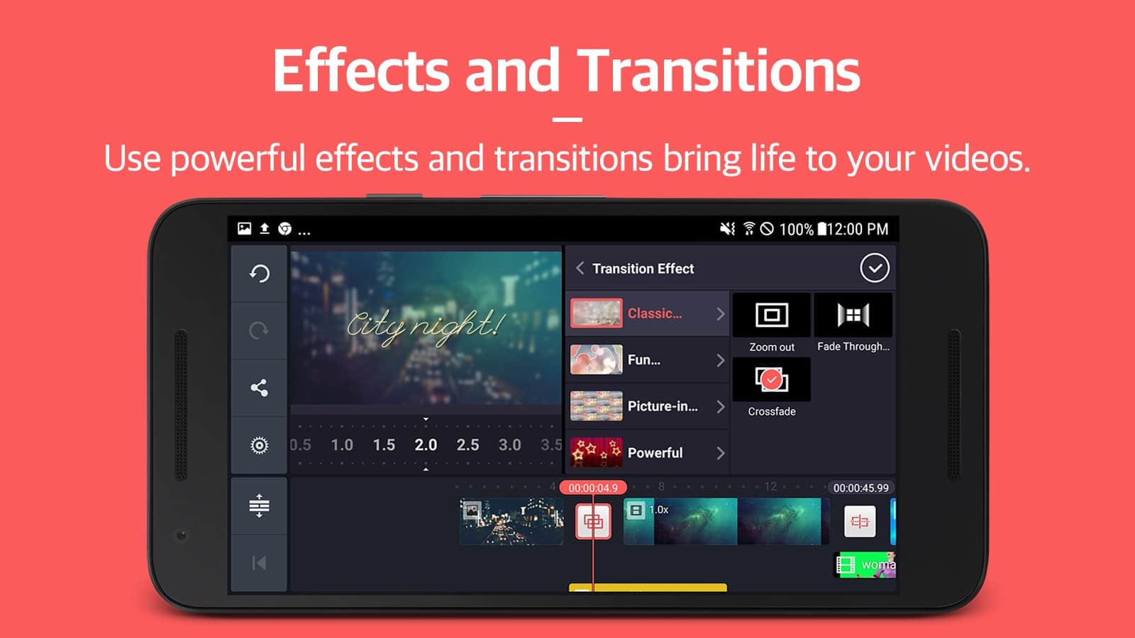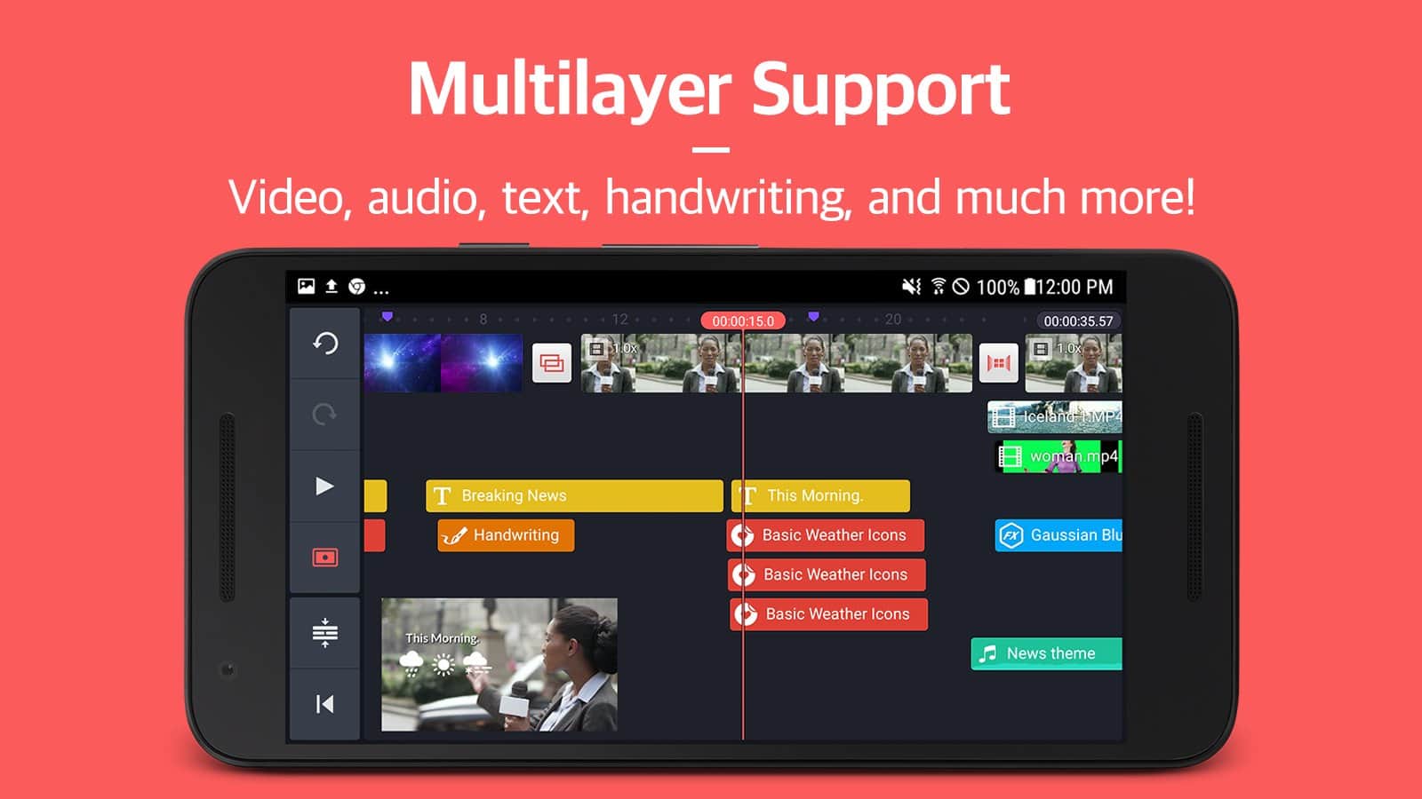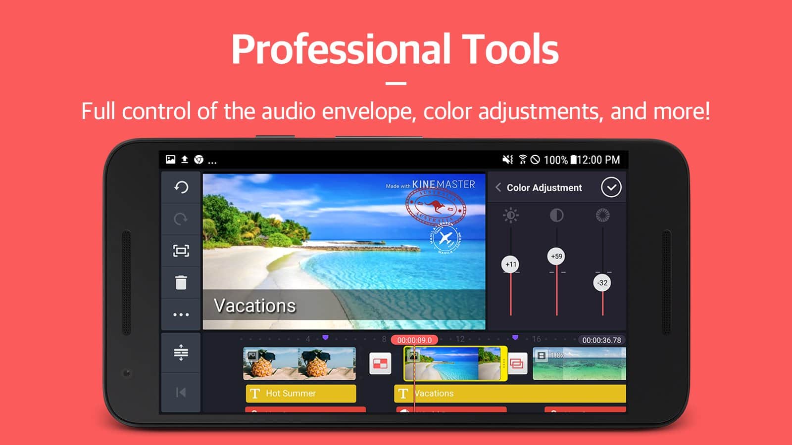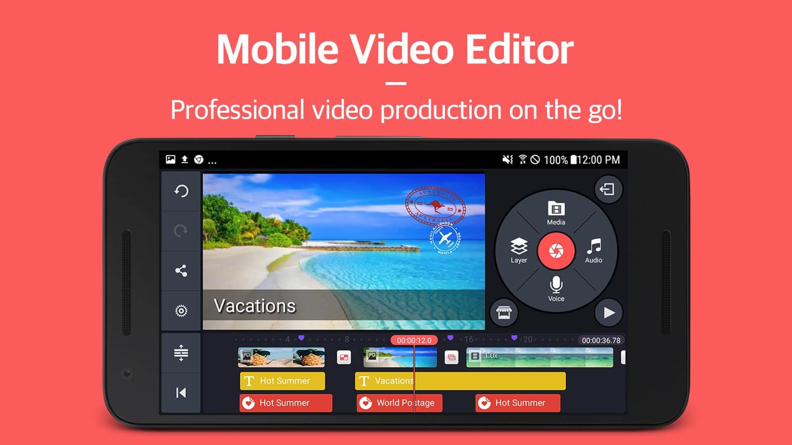 KineMaster - Pro Video Editor – entre la gran cantidad de editores de video disponibles en el mercado, KineMaster se destaca por su trabajo en formato FullHD (1080p). Otras características del programa son menos específicas, pero no menos interesantes: soporte para arrastrar y soltar, recorte de clips, aplicación de diversos filtros y efectos, como rotación, transiciones en 3D, imagen en imagen. Para crear tu película puedes usar videos en formatos MP4, 3GP, MOV, música en MP3, M4A, AAC y fotos u otras imágenes en JPG, PNG.