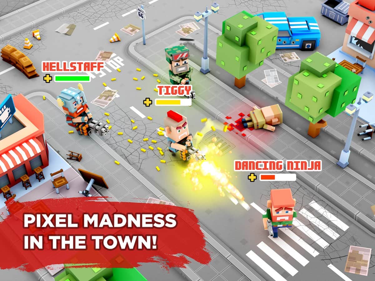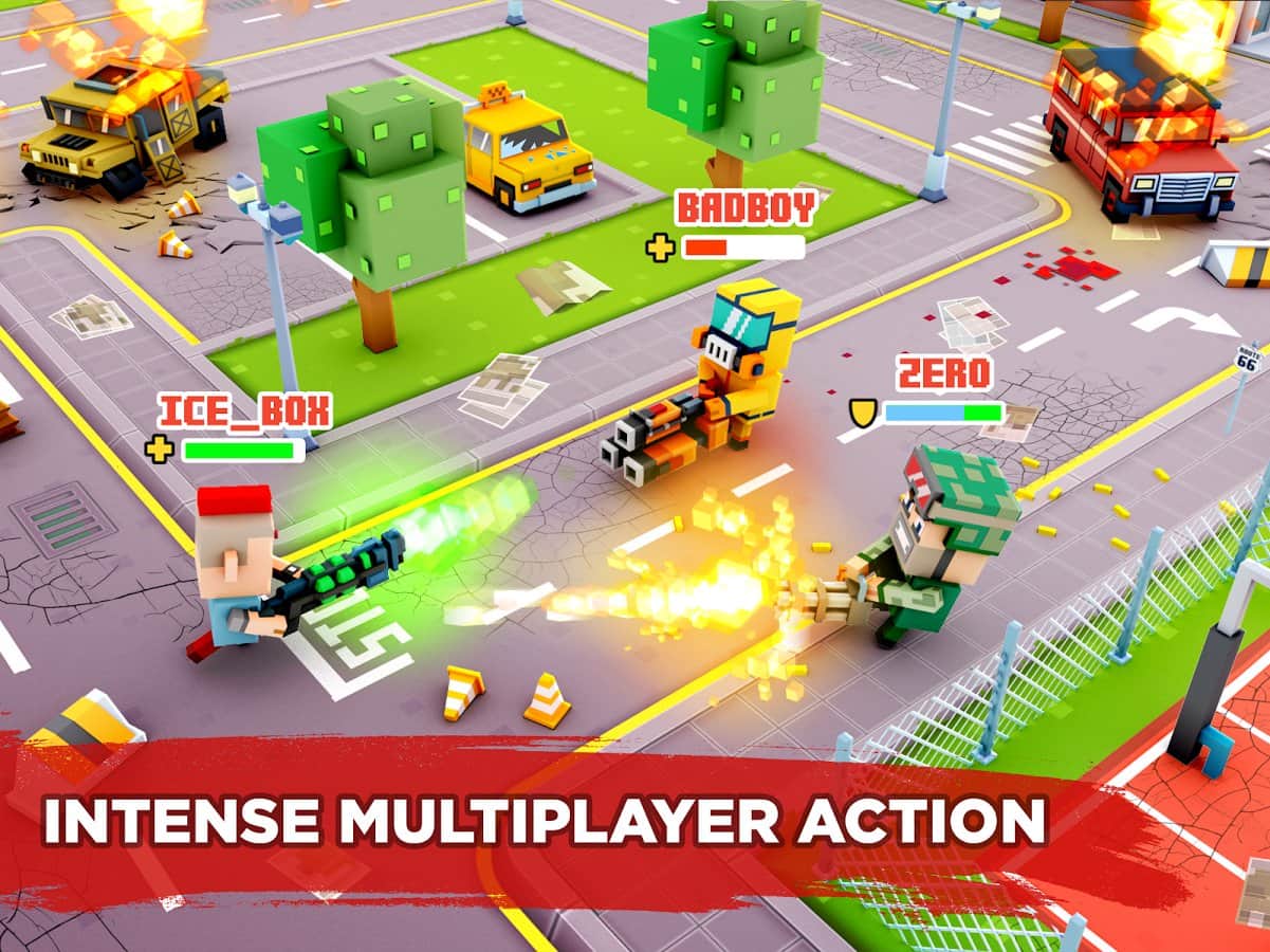 Kings of Guns, un shooter para Android con vista desde arriba donde recoges armas y destruirás toda vida en esta ciudad. En este juego te encuentras en un mundo después de un Apocalipsis zombi, donde todos los seres vivos se han convertido en zombis, y incluso aquellos que sobrevivieron se han convertido en tus enemigos declarados. Con poderosas armas como pistola, escopeta, AK-47, bazuca, lanzallamas, motosierra y tractor y tanque, lucha no solo contra zombis sino también contra otros jugadores que se mueven en el mapa. Comienza a jugar ahora y desafía a los mejores jugadores y a tus amigos. Dispara a los objetivos en movimiento y trata de sobrevivir en este mundo peligroso.