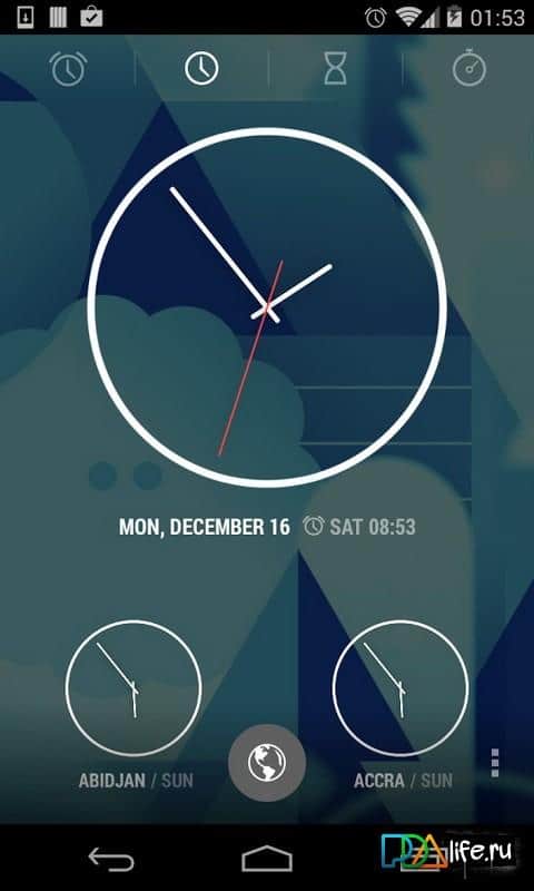 Widget de Reloj KitKat+ - el reloj de Android 4.4 (KitKat) ya está disponible en cualquier dispositivo. Además de las funciones estándar, aparecieron funciones adicionales, que pueden ser necesarias para el propietario del gadget móvil. Para las personas deportistas, está la opción de un cronómetro y temporizador, y el reloj siempre a tiempo te despertará.