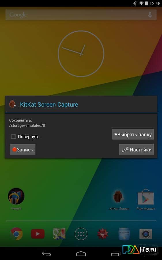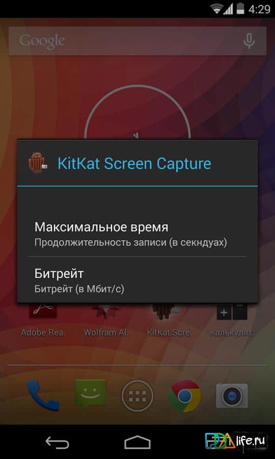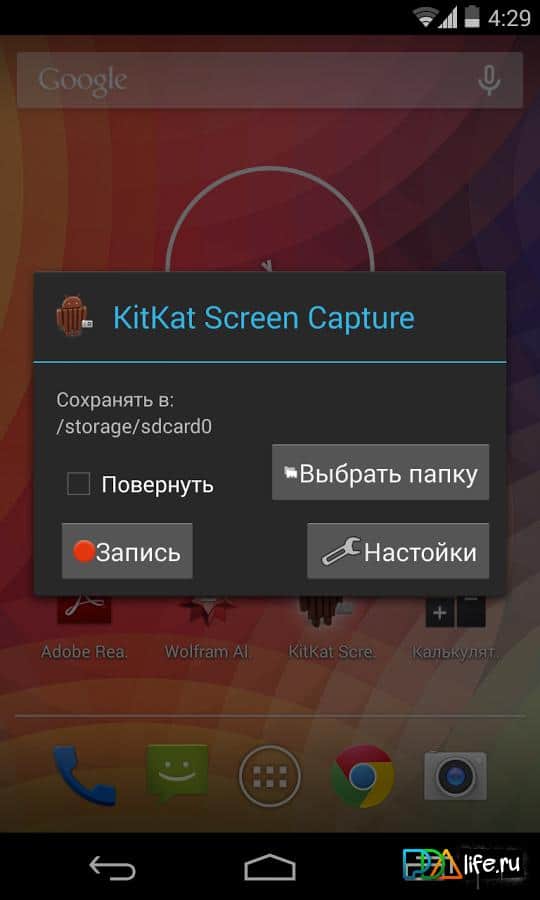 KitKat Screen Capture – ¡todo es sencillo! Aplicación para dispositivos Android del desarrollador Slimdroid, que permite grabar video de la pantalla de su smartphone/tableta. Lo único que hay que tener en cuenta es la necesidad de tener derechos de usuario root. ¡Disfruta usándolo! Para que la aplicación funcione, se requiere la versión de Android 4.4+