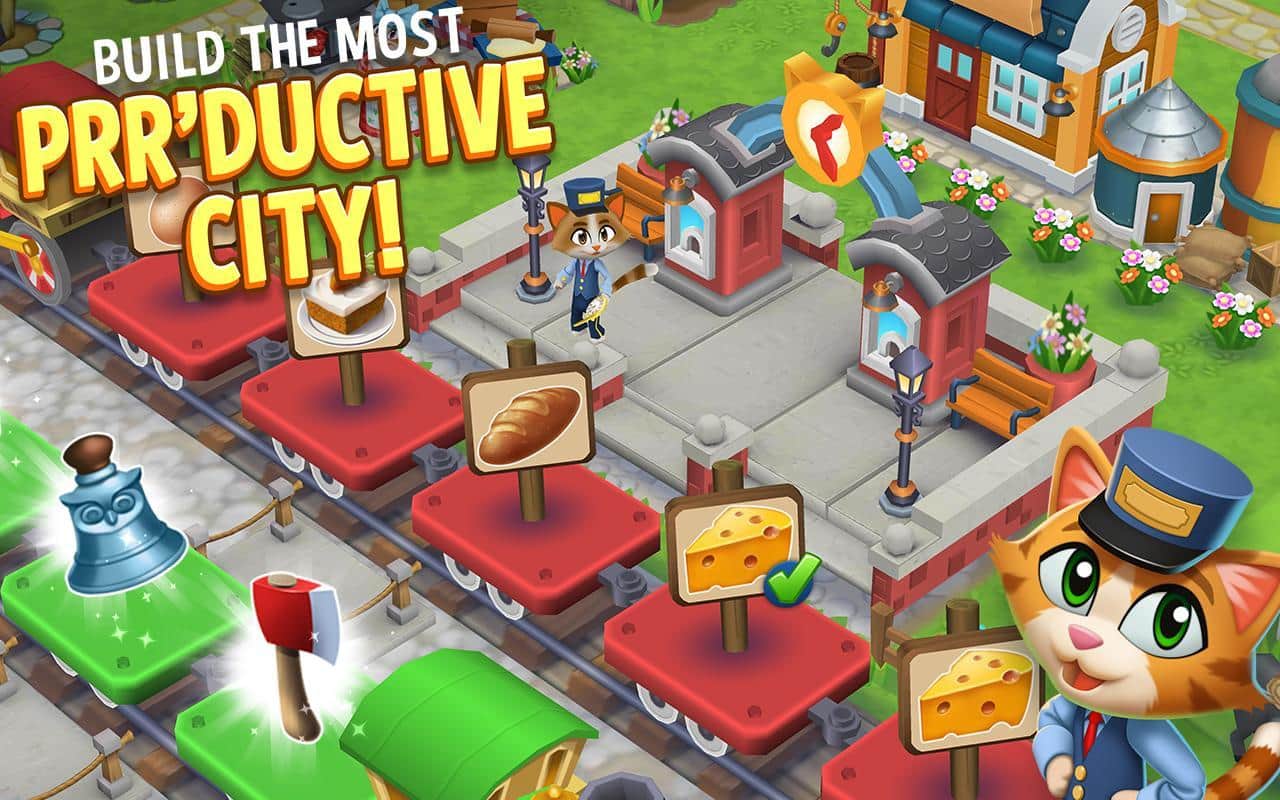 Kitty City farm en Android, donde construyes una ciudad que sufrió después de las inundaciones. Tu tarea principal en este juego es construir varios edificios y cultivar nuevos cultivos para alimentar a los residentes de la ciudad. En el juego, estás junto a una linda gata llamada Franny y sus amigos, involucrándote en la construcción, produciendo varios recursos, explorando nuevo territorio, y plantando y cosechando. Haz tu mejor esfuerzo para devolver a la ciudad su antigua belleza y asegurar que todos los residentes tengan comida deliciosa. Completa varias tareas y llena la ciudad con restaurantes, cafés, casas acogedoras y fuentes. Utiliza en el juego varios bonificaciones y mejoras para avanzar más rápido y superar los niveles desafiantes.