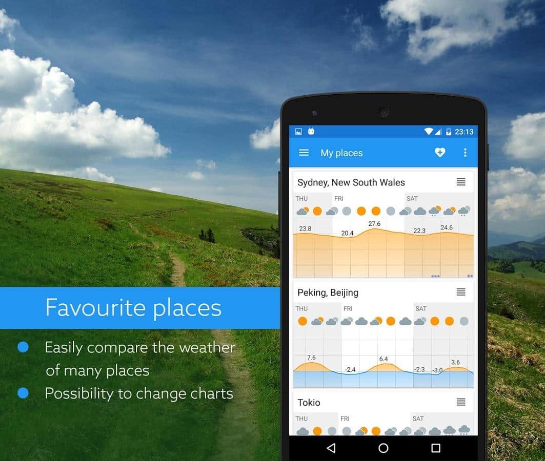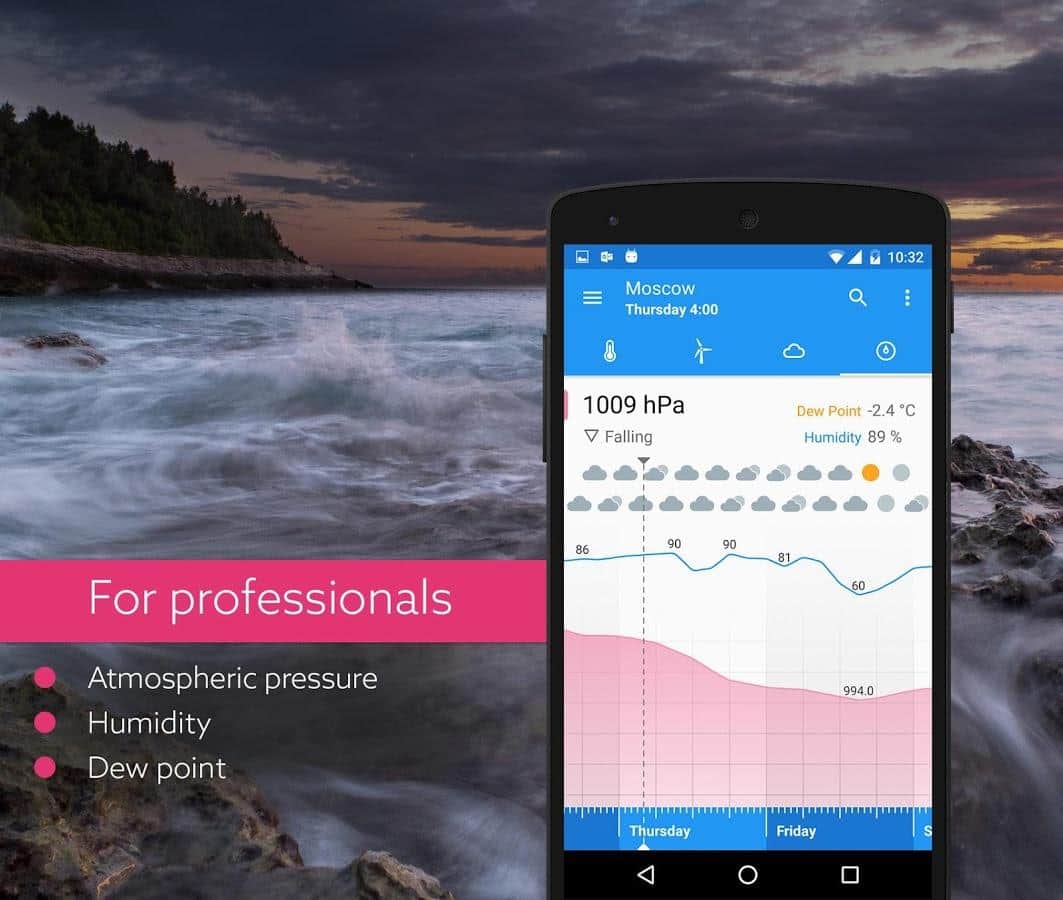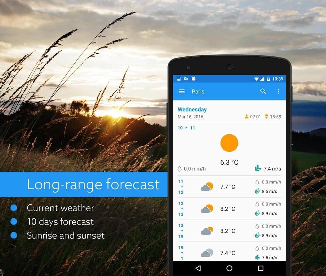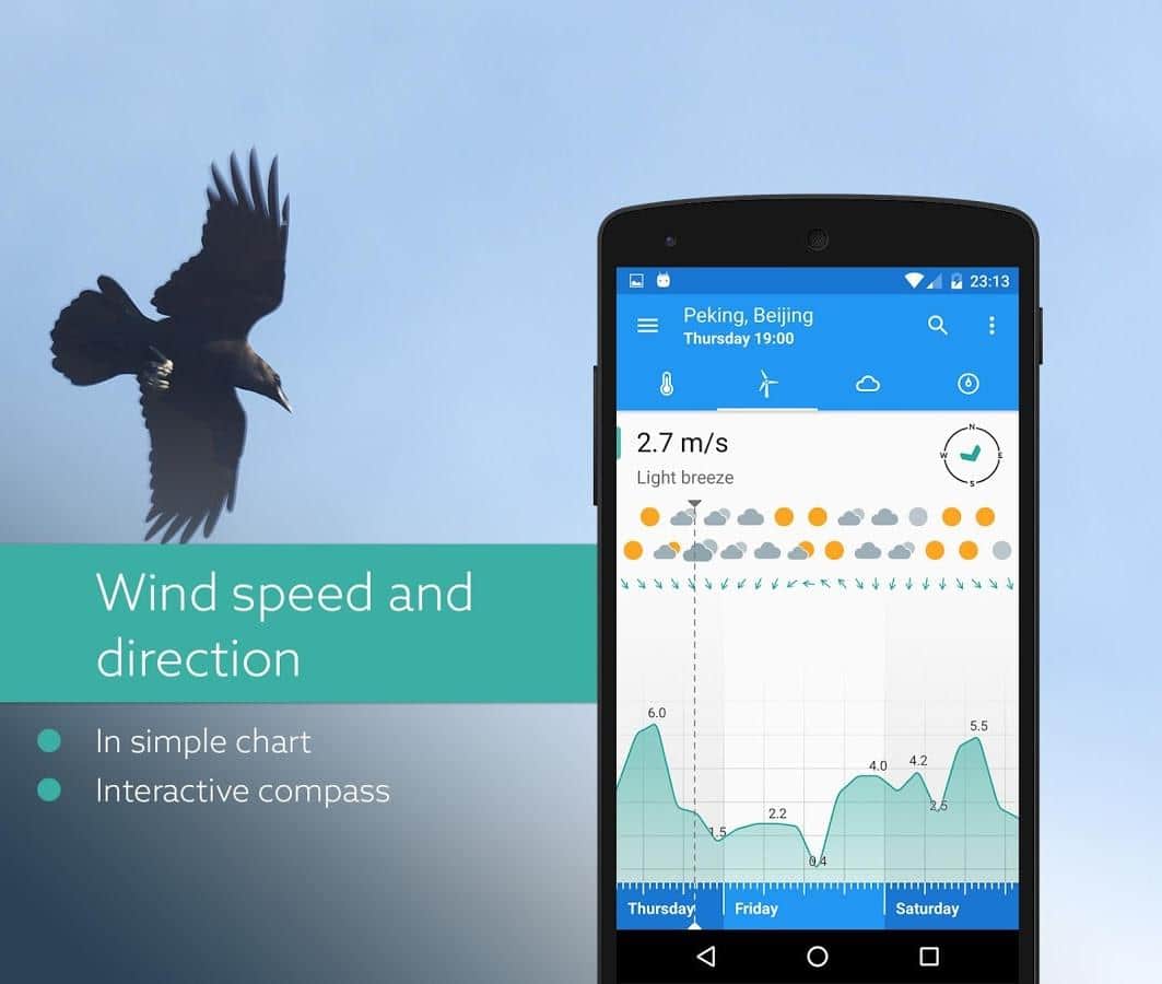 Klara es un pronóstico del tiempo muy preciso y cualitativo. La principal diferencia de esta aplicación con otras similares es su control muy inusual. Sí, es la gestión, por extraño que parezca. Tienes que mover manualmente el control deslizante, cambiando así el tiempo y, por lo tanto, el clima en un área de tiempo determinada. La aplicación es muy divertida, colorida y tiene una interfaz fácil de usar. Además, la predicción no solo incluye la temperatura y la presencia de lluvia, sino que también revelará la presencia de nubes y la presión. Mantente siempre informado sobre el pronóstico del tiempo.