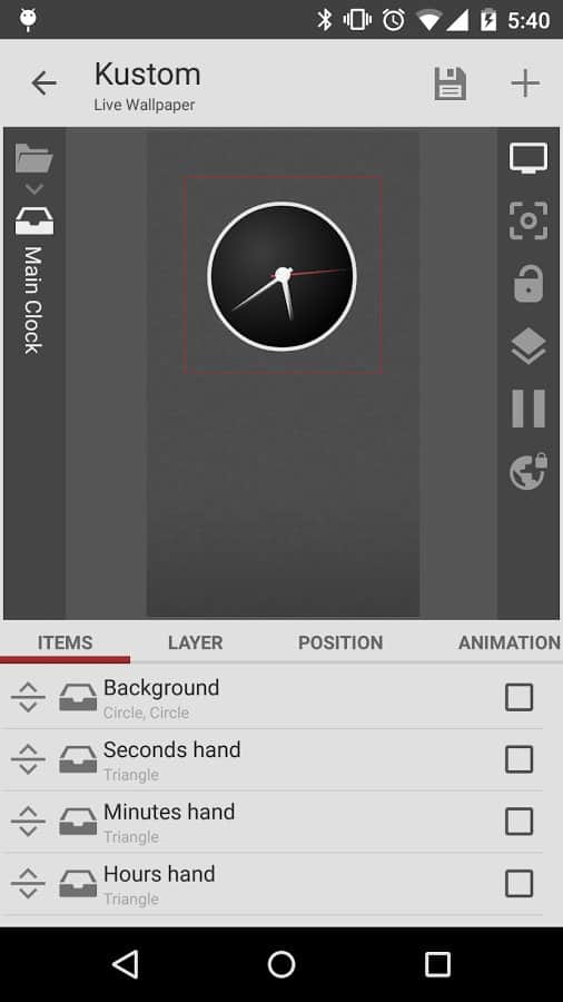 Cuando no te gusta ninguno de los temas existentes de la pantalla, cuando ya estás cansado de buscar fondos de pantalla en línea, puedes intentar crear algo propio con la ayuda de esta aplicación. El programa, como su nombre indica, te permite crear un nuevo fondo de pantalla en vivo utilizando imágenes, fuentes, filtros y efectos disponibles. Además, varias animaciones y efectos están vinculados al funcionamiento del giroscopio. El principio de funcionamiento aquí es que en Photoshop o Gimp puedes crear las capas, cada una de las cuales se puede editar por separado.