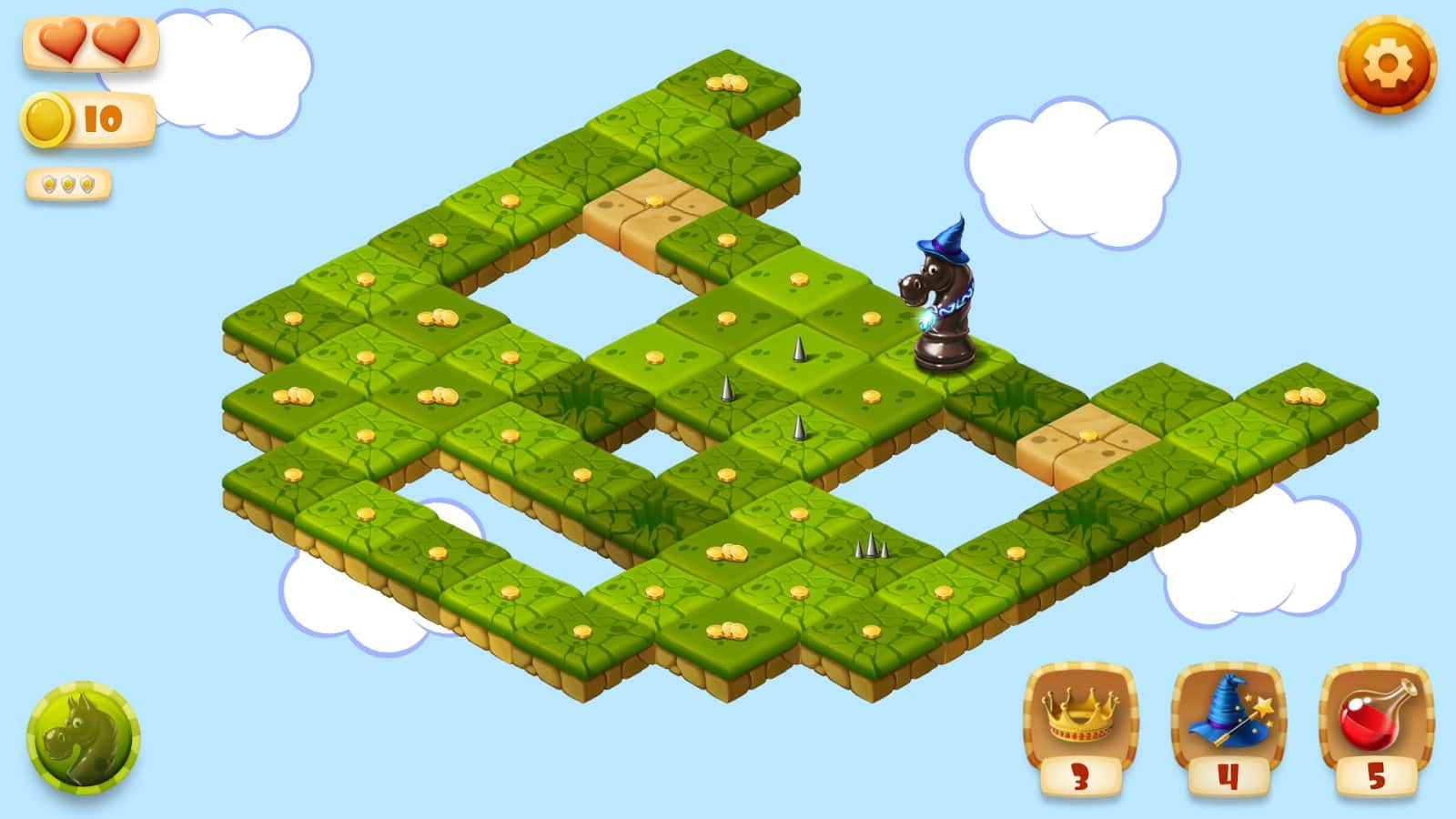 El Tour del Caballero - un nuevo giro en un antiguo juego de rompecabezas basado en la mecánica del ajedrez, a saber, el movimiento de la figura del caballo. Moviendo la figura en forma de la letra "G" tu tarea es moverte de tal manera que recojas todas las monedas y no te quedes atascado. En el tablero, te enfrentarás a otros problemas en forma de piezas de ajedrez enemigas. Solo el Tour del Caballero tiene más de cien niveles diferentes, hechos con excelentes gráficos, los desarrolladores pusieron toda su imaginación y han implementado ubicaciones no lineales a través de las cuales puedes realizar todas tus habilidades tácticas. El nivel de dificultad de cada tablero es diferente y las opciones de paso son docenas, así que todo dependerá de ti. Los creadores del juego tampoco se olvidaron de las oportunidades de desarrollo y el sistema de logros.