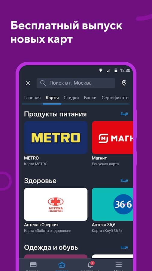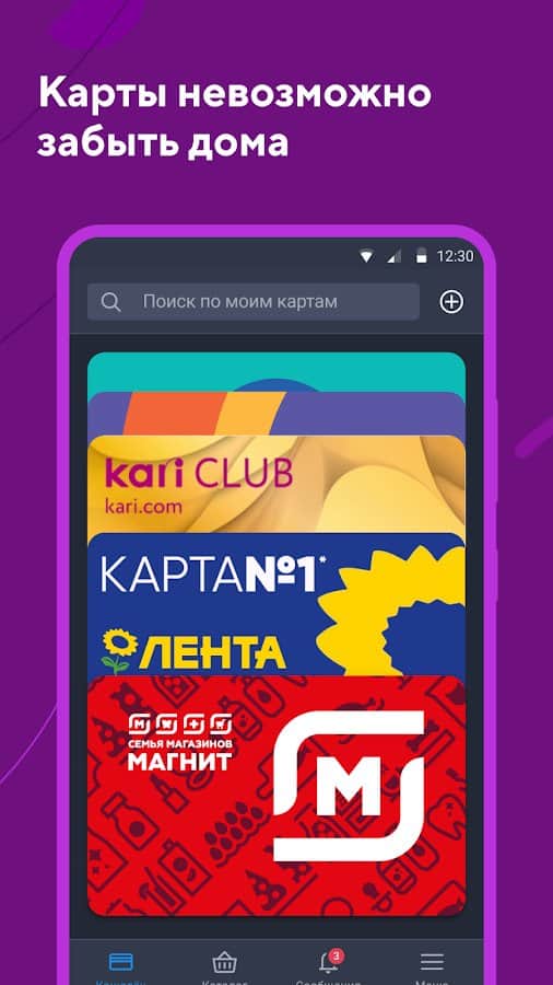 Wallet - Tarjetas de Descuento es una aplicación para personas que odian llevar todas las tarjetas en su billetera. Esta aplicación te permite descargar tarjetas bancarias y de descuento, dividirlas en categorías (como prefieras). Esto permite resolver el problema de almacenar tarjetas, ya no será necesario llevar un estuche para tarjetas (también llamado tarjetero, del inglés Cardholder) en caso de realizar una compra. Por lo tanto, 5 razones para instalar esta aplicación: 1. Deshazte de las tarjetas extra; 2. Las tarjetas estarán siempre contigo; 3. Obtén reembolsos; 4. Emisión de tarjetas desde la propia aplicación; 5. No te pierdas las mejores ofertas