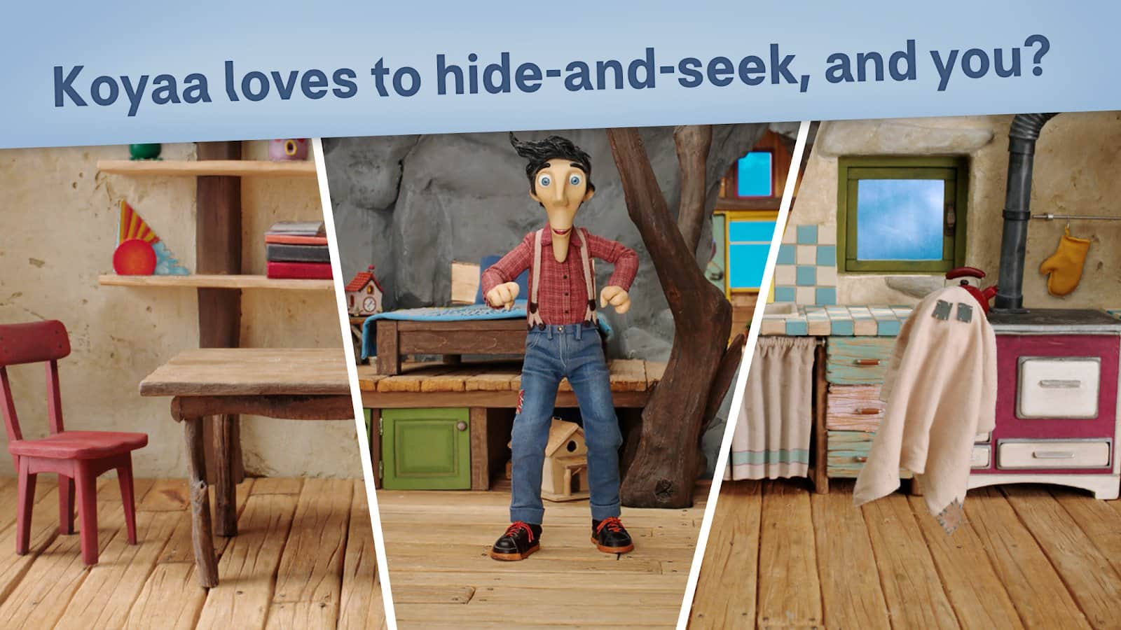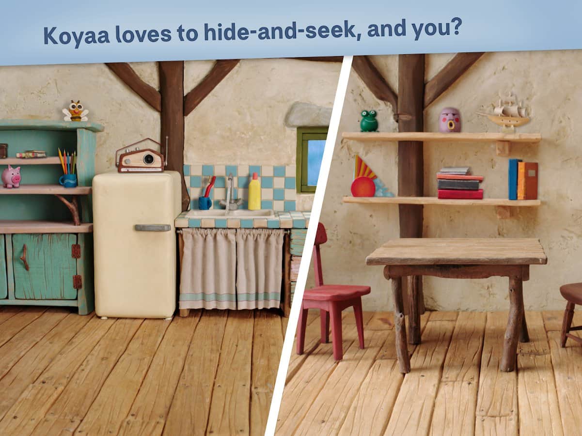 KOYAA - un juego de aventura en Android, en el que tú o tu hijo tienen que ayudar al personaje principal a buscar varios objetos e interactuar con ellos. Los gráficos del juego están hechos en estilo de claymation, en forma de stop motion y atraerán a muchos. El juego está basado en los cortometrajes animados existentes de Koyaa y ya será conocido por muchos. Koyaa transmite un mensaje universal: que una situación que a primera vista parece insuperable puede convertirse a tu favor con la ayuda de la imaginación y un buen estado de ánimo, y permitida de una manera interesante.