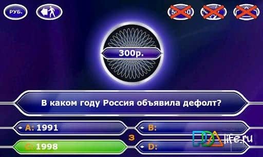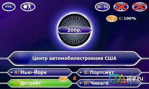Interesante juego que requiere algo de conocimiento en diferentes áreas, así como lógica, ¡y quizás un poco de suerte! Gana un millón, solo respondiendo preguntas de dificultad variable. Cuanto más cerca estés de ganar, más difíciles serán las preguntas. Al igual que en la versión televisiva del programa, en el juego hay 3 pistas: llama a un amigo, 50/50 y pregunta al público. Fallaste una vez, inténtalo de nuevo, el juego está equipado con una gran cantidad de preguntas, ¡así que será interesante en cada intento! Vale la pena señalar que este juego está realizado en calidad HD y está equipado con excelente música y mejores gráficos. Todo esto se une en esta versión juego ¿Quién quiere ser millonario? , que ayudará a pasar el tiempo y aprovecharlo de manera útil.