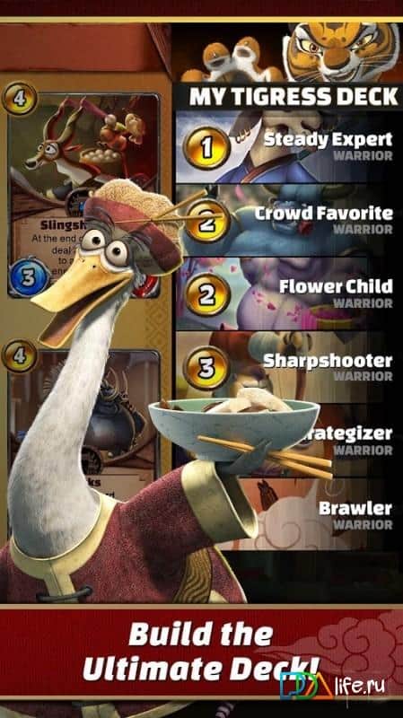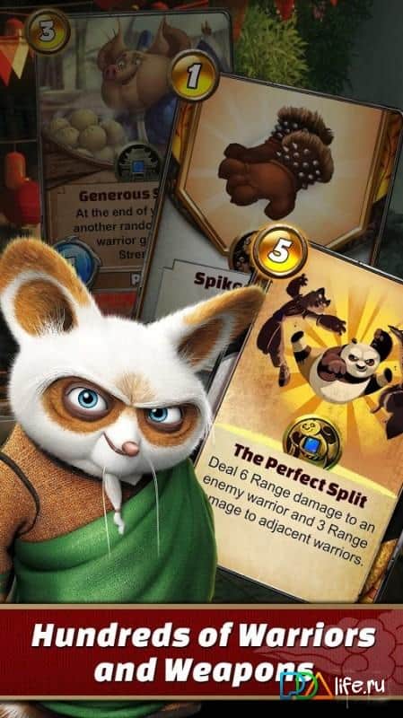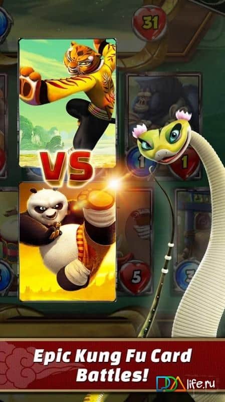 Kung Fu Panda: BattleOfDestiny – el juego en Android, basado en la historia del mismo nombre donde te encontrarás nuevamente con los personajes familiares. En este juego participas directamente en batallas de kung fu con jugadores de todo el mundo. Consigue tu colección de cartas, que consistirá en una variedad de personajes, técnicas de combate y armas. Desafía a los mejores jugadores y lucha en la arena, utilizando para pelear a tus mejores luchadores. Juega con amigos y desarrolla tu estrategia de combate, ascendiendo a la cima de la tabla de clasificación. Crea tus propias cartas únicas y obtén valiosos premios.
