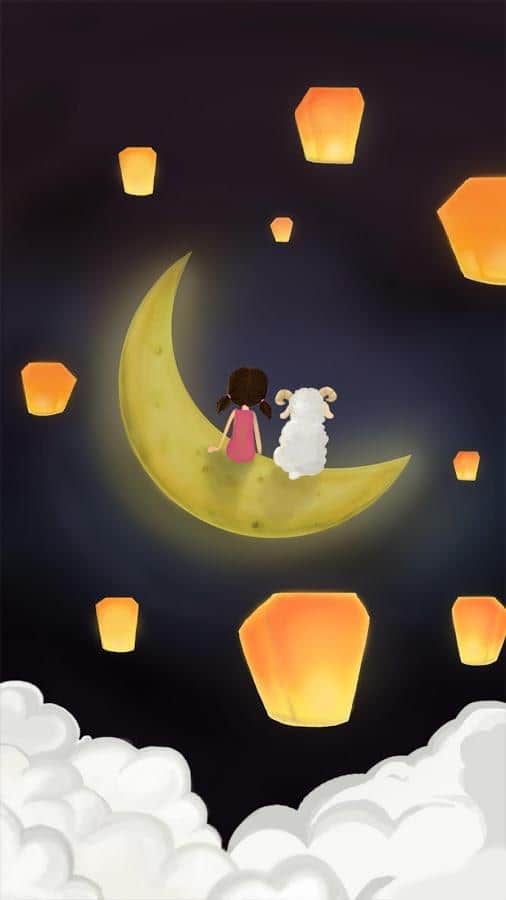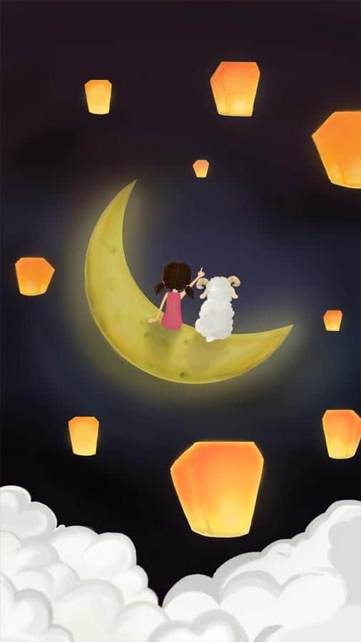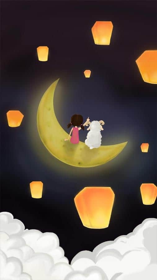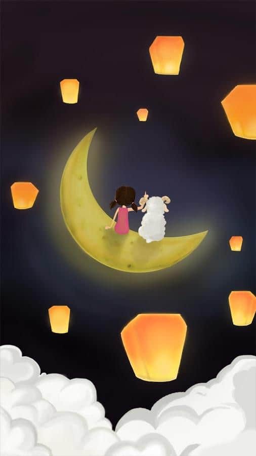 Fondo de pantalla en vivo del Festival de Linternas – gran fondo de pantalla en vivo en Android donde podrás ver el festival de linternas en China. En este fondo de pantalla tienes a una chica que subió a la luna junto con un niño adorable para disfrutar de las linternas que vuelan alto y que iluminarán el cielo. La gente inventó este festival para, junto con linternas, enviar al cielo sus deseos y sueños para que se hagan realidad. Desliza la pantalla de tu dispositivo y observa cómo la chica levantará sus manos hacia el cielo y señalará las estrellas con su dedo. Hermoso fondo de pantalla en vivo que te dará un estado de ánimo fantástico.