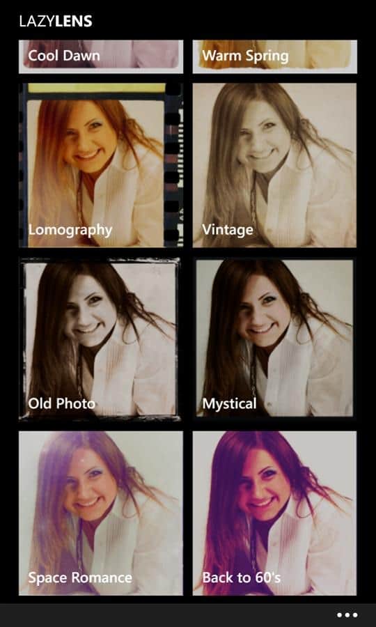 LazyLens es un editor de fotos rápido y flexible para teléfonos con Windows que te permite hacerlo con un toque de dedo. En la aplicación hay ajustes estándar como brillo, contraste y saturación, así como recorte, efecto de inclinación y más. Con esta aplicación harás fotos genuinas y únicas.