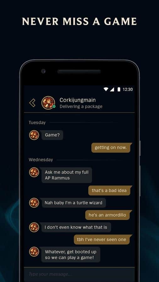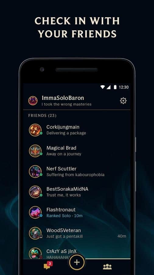 League of Friends – la aplicación compañera se conecta directamente al juego en sí. Si aún no tienes una cuenta, necesitarás registrarte en el juego. Usando la aplicación, puedes chatear con tus amigos y todos los mensajes estarán sincronizados. Gracias a esta aplicación, no perderás la invitación. Cuando todo el equipo se reúna, tu teléfono te alertará. Así que puedes ver la lista de todos tus amigos. Gradualmente se añadirán nuevas funciones en nuevas versiones.