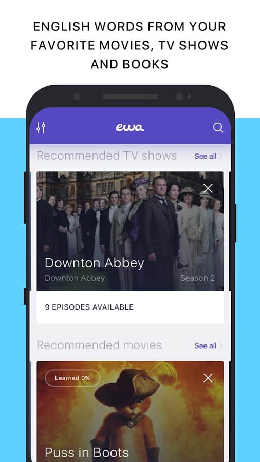 Junto con EWA no necesitas aprender palabras y frases en inglés, ni sentarte en aburridas conferencias y clases para aprender este idioma. Aquí puedes aprender rápidamente un nuevo diseño con la ayuda de ver películas y series, divirtiéndote al mismo tiempo. Siendo no solo productivo sino también interesante, esta lección traerá muchos beneficios y te permitirá ver tus películas favoritas y leer libros en inglés en su versión original. Aquí están los únicos métodos de estudio efectivos y probados, la actualización diaria de nuevas palabras, una enorme base de datos de frases populares, alertas oportunas sobre nuevos productos.