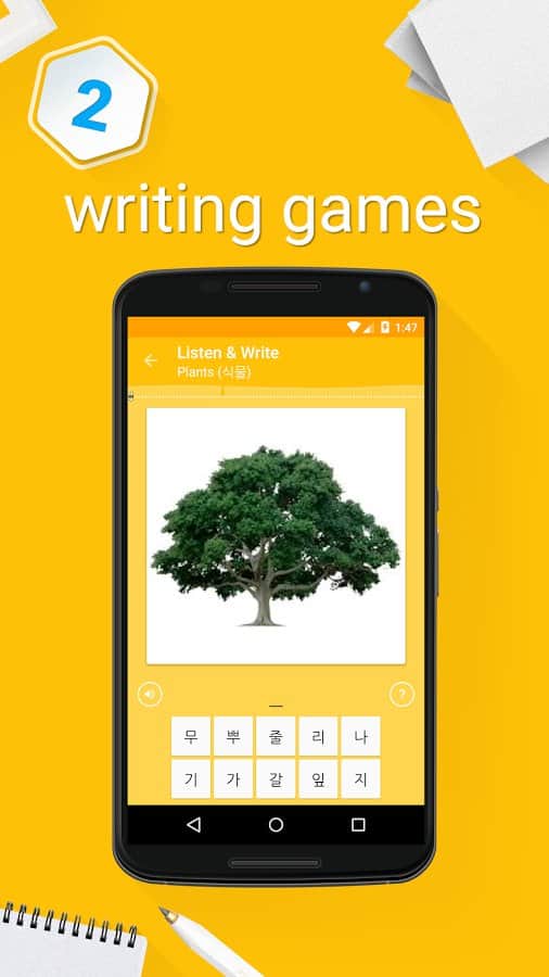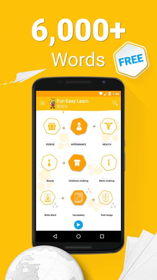 Aprender vocabulario coreano – un fascinante juego en Android, con el que podrás estudiar el idioma coreano. Si te gusta viajar por el mundo, mudarte a un nuevo país o trabajar en una empresa internacional, entonces solo necesitas aprender un nuevo idioma. Aprende el idioma coreano de una manera fácil y divertida y enriquece tu vocabulario con nuevas palabras. La aplicación cuenta con más de 6000 palabras con imágenes para ilustrar las palabras, transcripciones fonéticas, más de 15 temas temáticos y 140 subtemas. Disfruta de tu tiempo libre aprendiendo un idioma extranjero y aplicando este mínimo esfuerzo. El juego cuenta con tres niveles de dificultad: principiante, intermedio y avanzado.