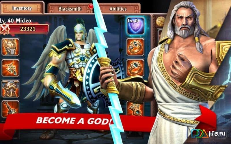 Alrededor de estructuras griegas antiguas y la ciudad, donde tendrás que luchar con los Cíclopes y grifos, y el peor enemigo se convertirá en Medusa. Pero las batallas por turnos no solo serán con criaturas míticas, las batallas por turnos de Legacy of Zeus pueden ser con las guildas y clanes opuestos. Puedes jugar el juego en solitario, pero el juego en equipo siempre es más beneficioso y rentable. Crea tu propio personaje único y comienza la batalla para establecer en la tierra una paz fuerte e inquebrantable sin enfrentamientos sangrientos.
