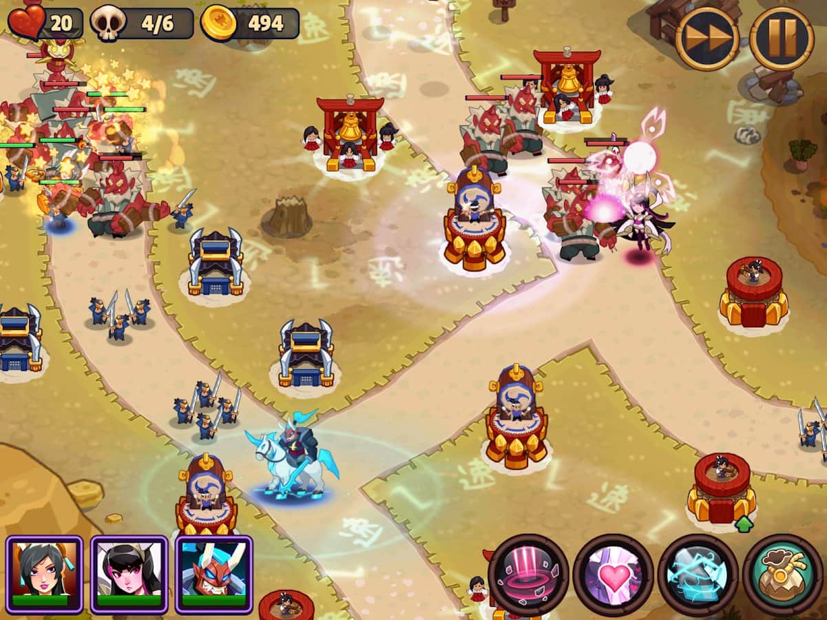 El jugador en el Reino de Defensa: Leyendas de Héroes TD necesita tener un pensamiento estratégico y planificar todos los puntos de defensa de la ciudad. Las hordas enemigas siempre intentarán capturar la fortaleza y conquistar al pueblo, volviéndose cada vez más poderosas. Así que, primero que nada, necesitas construir una serie de torres de defensa que puedan contener al enemigo, mientras reúnes un ejército. Es mejor utilizar personajes con habilidades únicas que aumentarán enormemente el ejército. ¡Conviértete en el mejor señor de la guerra y salva al Reino de la destrucción!