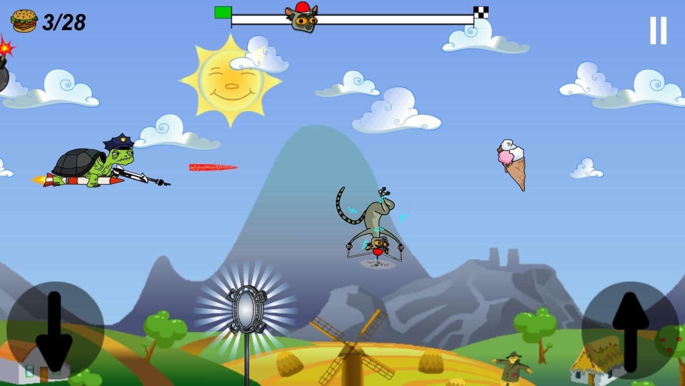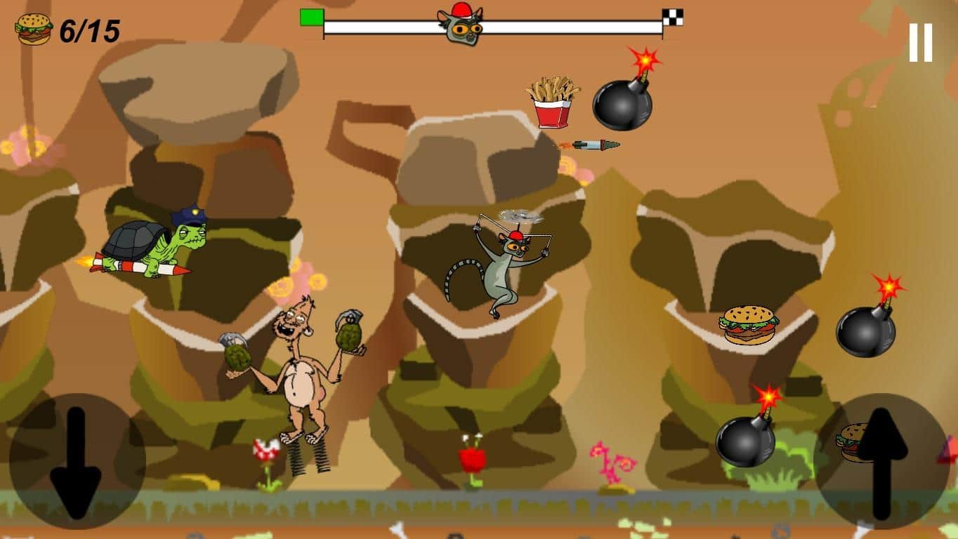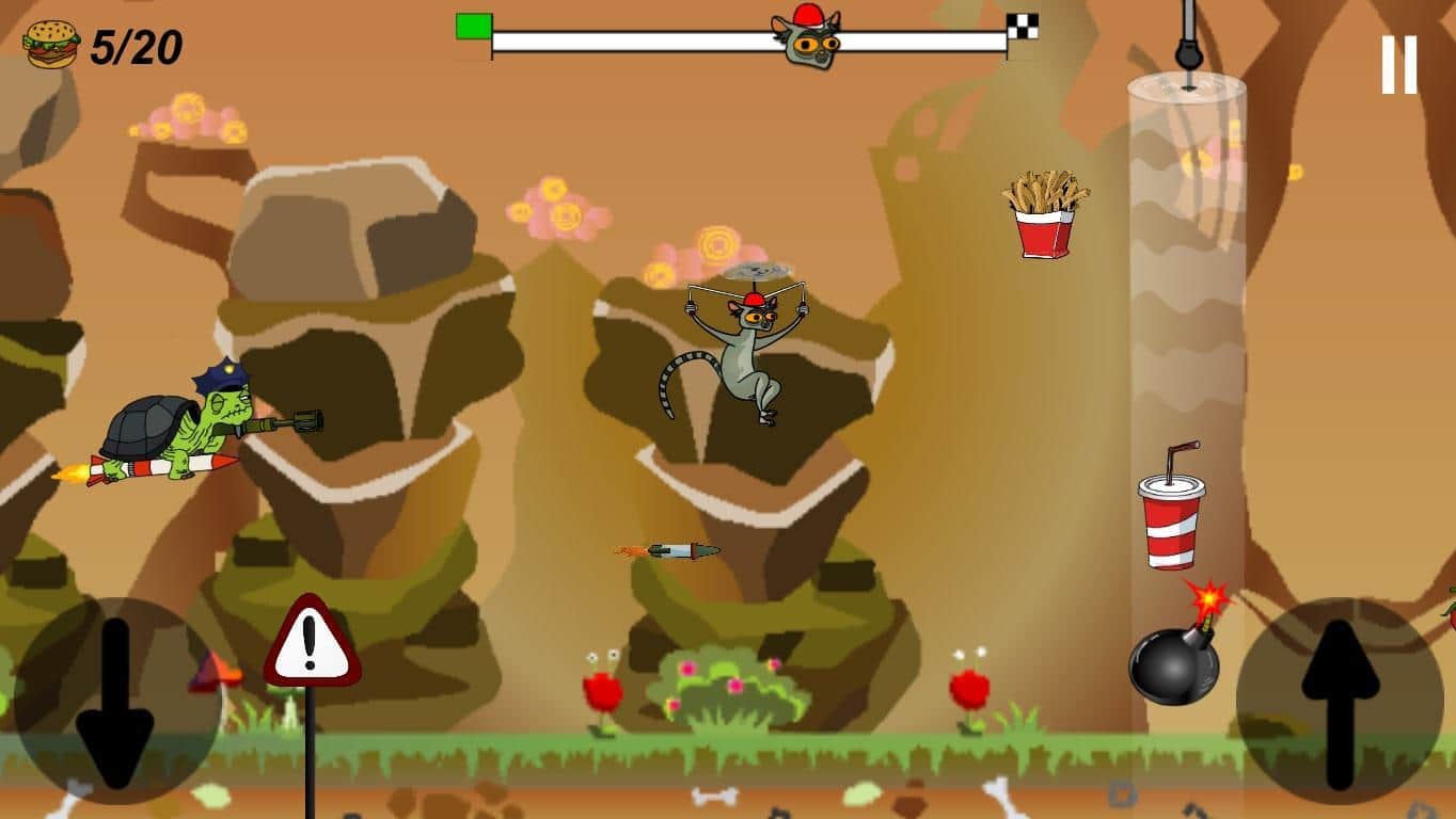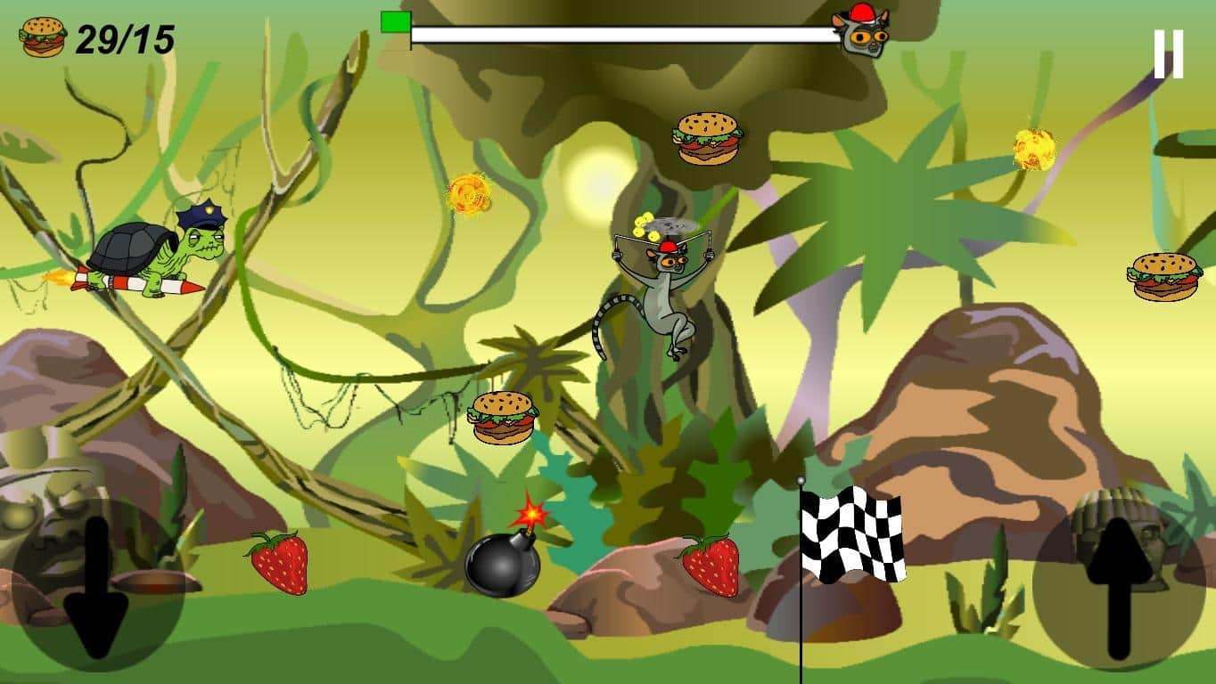 Lemurzin, condenado a cadena perpetua por un crimen que no cometió, escapa de la sala del tribunal con la ayuda de un sombrero-helícoptero. El juez corrupto, entendiendo que esto no terminará bien para él, envía a una tortuga policía tras el fugitivo. Y ahora el protagonista deberá superar no un solo nivel con un perseguidor lento en su cola. Es necesario esquivar los proyectiles de fuego lanzados por el guardián de la ley y, al mismo tiempo, cumplir con la tarea establecida. A saber, recolectar diversos alimentos, preferiblemente sin tocar las bolas explosivas con mecha encendida, simplemente bombas.