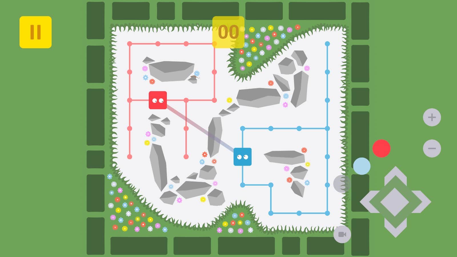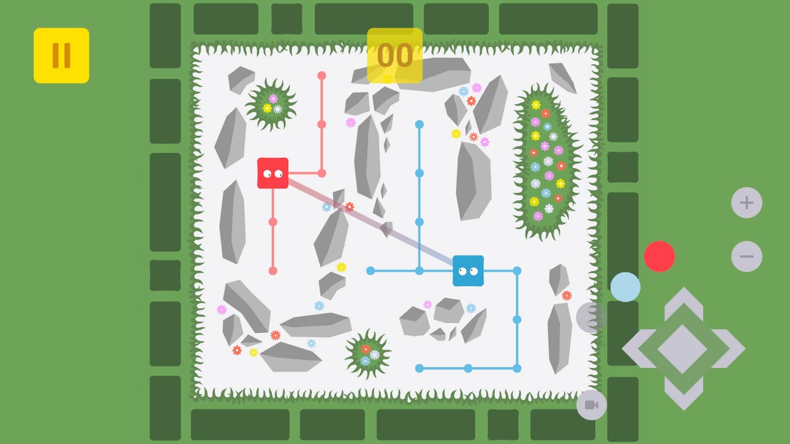 Déjame verte - un juego de rompecabezas adictivo para Android donde ayudarás a los dos cubos a encontrarse. En este juego te encontrarás en la caja donde los dos dados son rojo y azul. Tu tarea será ayudarles a encontrarse sin que interfieran obstáculos. Cada cubo tiene su propia trayectoria, marcada con los colores del cubo. Mueve los cubos a diferentes lugares en los campos y busca un lugar donde puedan encontrarse libremente. El juego cuenta con 30 niveles donde podrás poner a prueba tu ingenio y buena reacción. Resuelve desafiantes rompecabezas y disfruta de excelentes gráficos y sonido.