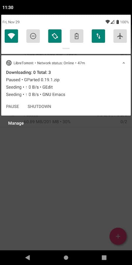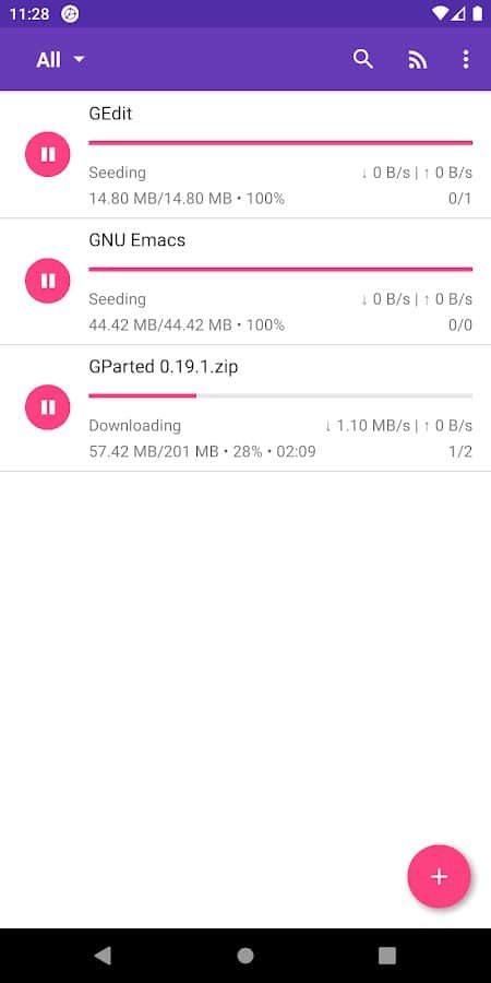 LibreTorrent - Observa cómo los archivos en formato Torrent seleccionados realizan descargas secuenciales. Configura independientemente los parámetros de red, batería e interfaz para un trabajo más cómodo, selecciona el idioma deseado de la lista con más de 35 traducciones, activa simultáneamente la descarga de varios archivos, descarga tanto datos pequeños como grandes, y simplemente observa qué tan rápido es el proceso automático. Puedes rastrear tu progreso tanto en la aplicación como en la pantalla de notificaciones.