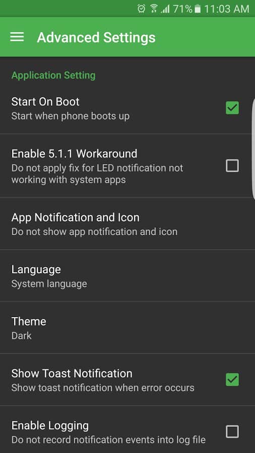 Si piensas que la pantalla LED de tu smartphone no es suficiente, puedes reconfigurar el color del LED y la frecuencia de parpadeo. Solo ten en cuenta que algunas de las notificaciones solo se pueden configurar en presencia de derechos de root. Estamos hablando de aplicaciones como Facebook, Facebook Messenger, correo electrónico, Twitter, WhatsApp y algunas otras. Pero esta es una excepción a la regla, así que, para configurar la mayoría de las alertas no se necesita la presencia del superusuario (SMS, MMS, Gmail, estado de la batería, conectar el cargador, activar Wi-Fi, Bluetooth, modo silencioso, etc.).