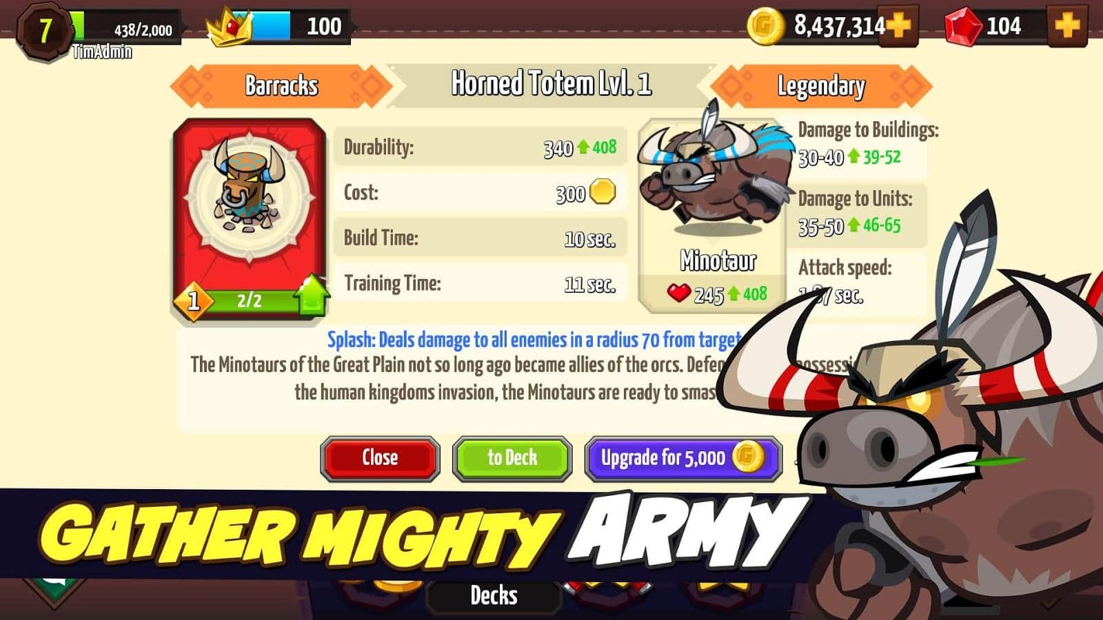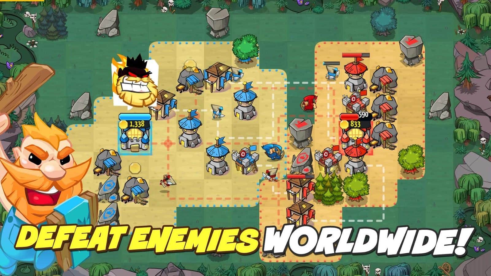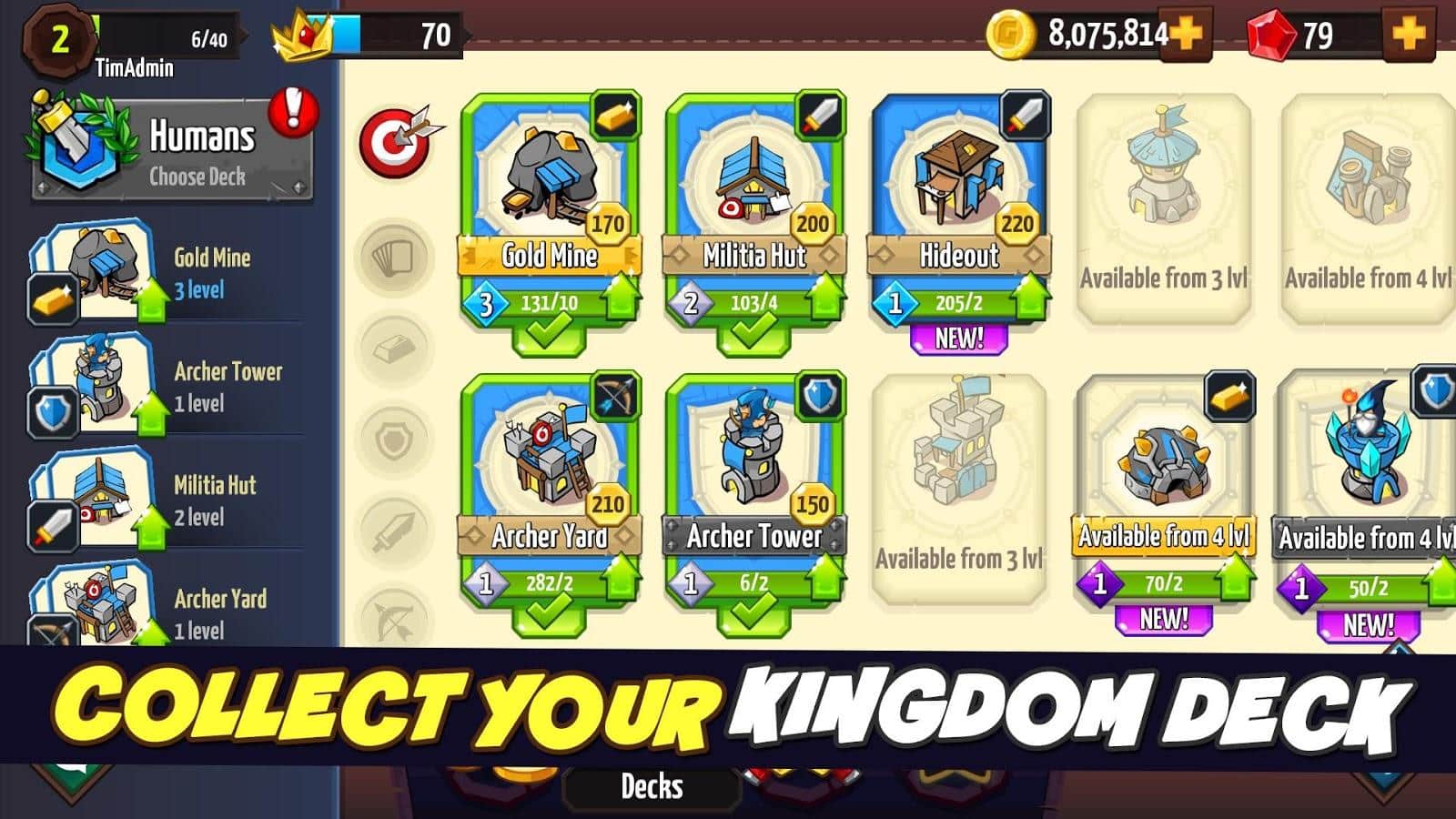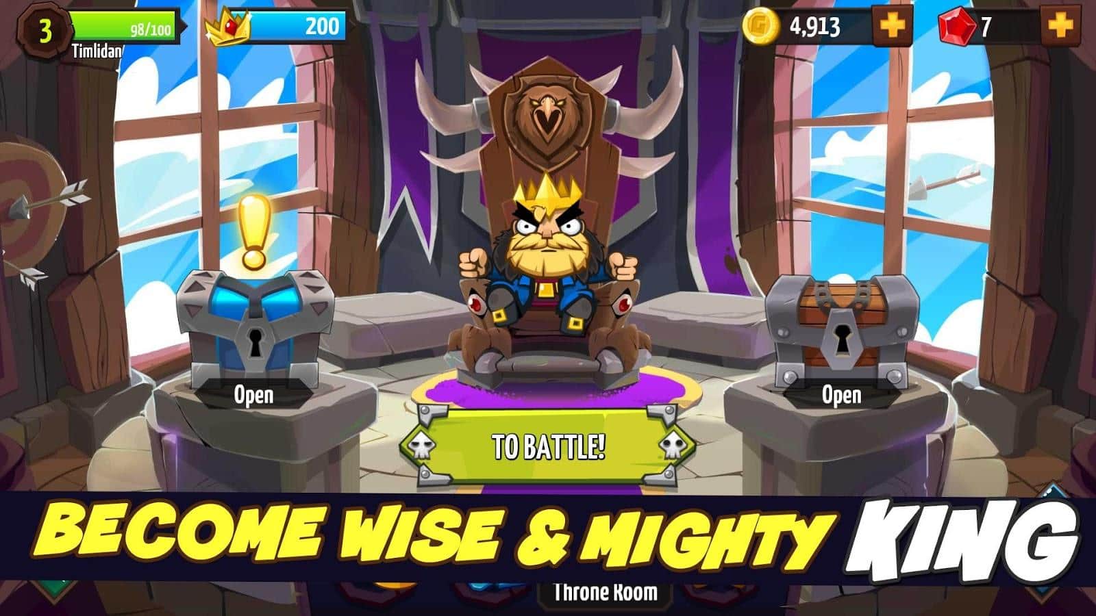 Como un Rey: Juego de Defensa de Torres Royale en Android que combina tres géneros: defensa de torres, estrategia y batallas en la arena. En este juego serás el rey de un amplio mundo lleno de magia, aventuras y batallas legendarias, y tu historia apenas comienza. Necesitas luchar en la arena, construyendo una variedad de estructuras y comandando tus tropas para destruir el castillo enemigo. Comienza tu conquista, gana cientos de victorias, conquista el mundo y lleva a tu Reino a la gloria para resignadas baladas.