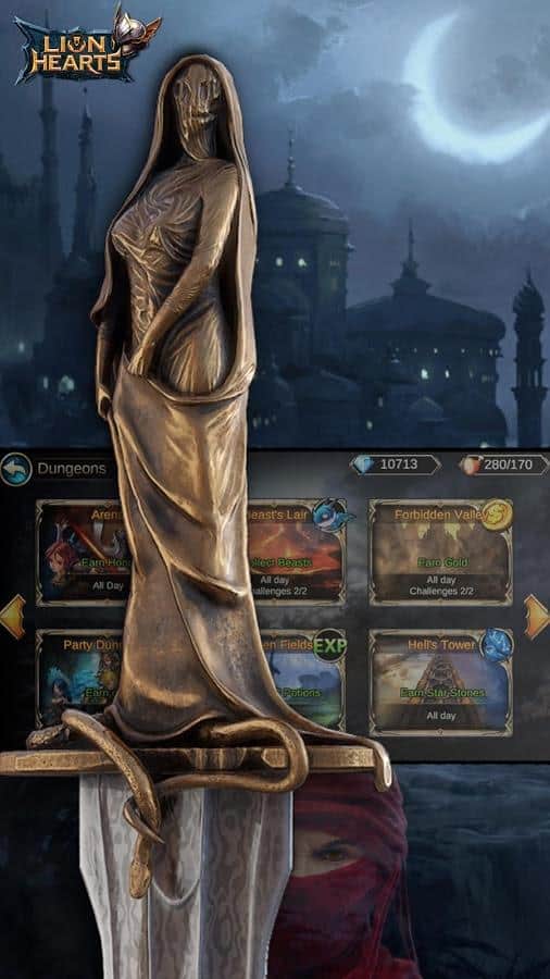 Lion Hearts: Final Clash – un juego donde luchas contra poderosos jefes y viajas a través de diferentes mundos. Elige tu personaje de los personajes mostrados en el juego, puede ser un guerrero, mago, caballero y otros. Ve a la aventura y participa en batallas épicas contra monstruos y demonios. Mejora las habilidades de tu héroe durante las batallas y muestra toda su fuerza y habilidad. Domina el campo de batalla entre los otros jugadores y muestra tus habilidades y cualidades de liderazgo. En total, el juego cuenta con más de 50 personajes diferentes, diferentes modos de juego y muchas armas y equipamientos.