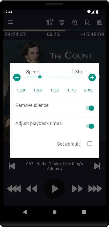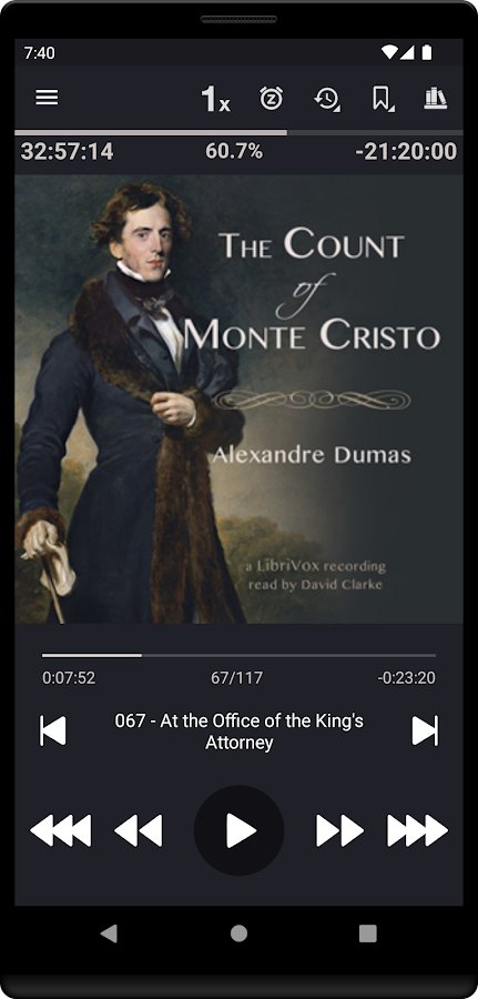 La aplicación está diseñada para aquellos que a menudo escuchan muchos audiolibros y aprecian la simplicidad y la concisión de la interfaz. A pesar de la aparente simplicidad, el programa contiene muchas funciones útiles: temporizador de sueño, ajuste automático del volumen, creación de una cola de reproducción, clasificación de archivos, descarga de portadas de libros, ecualizador incorporado, velocidad de reproducción ajustable, etc. Para mayor comodidad, hay varios widgets para elegir. La aplicación admite formatos como MP3, M4B, M4A, OPUS y OGG.