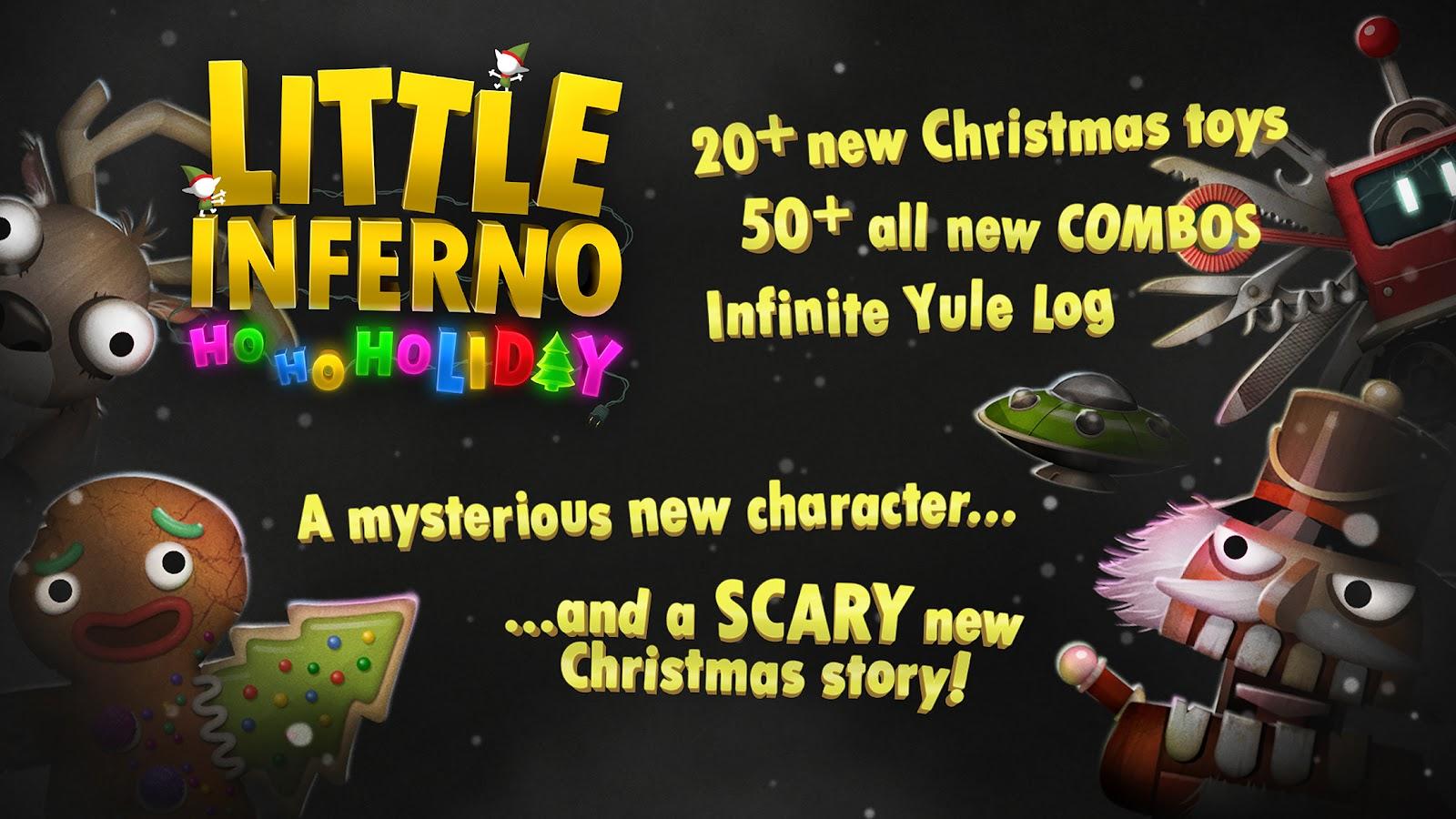 Little Inferno – un juego en Android en el que quemarás en la chimenea diferentes cosas. Tira a la chimenea, juguetes viejos, cartas, amigos, varios robots, coches a escala, pequeños reactores nucleares y más. Cuantas más cosas quemes, más dinero ganarás, y podrás gastarlo en varios beneficios. El juego te calentará en frías noches de invierno.