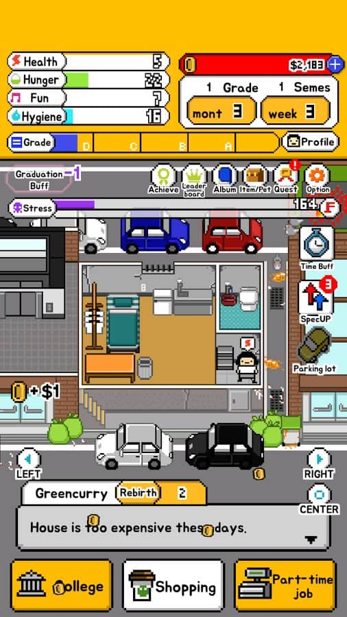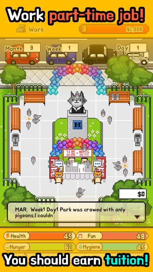 Viviendo Solo – un juego en Android donde ayudarás a un reciente graduado universitario a sobrevivir en una gran ciudad. En este juego jugarás el papel de un personaje que necesita establecerse, encontrar trabajo, pagar por la vivienda y la comida. Lleva una vida tranquila y ayuda a tu personaje a sobrevivir en la ciudad. Monitorea constantemente la salud y el bienestar de su héroe, y anímalo, preparando el escenario para adorables mascotas domésticas. Gana dinero y cambia la apariencia del personaje. El juego te agradará con su agradable gráfica en píxeles, simple e intuitiva, y emocionantes misiones y diversos finales.