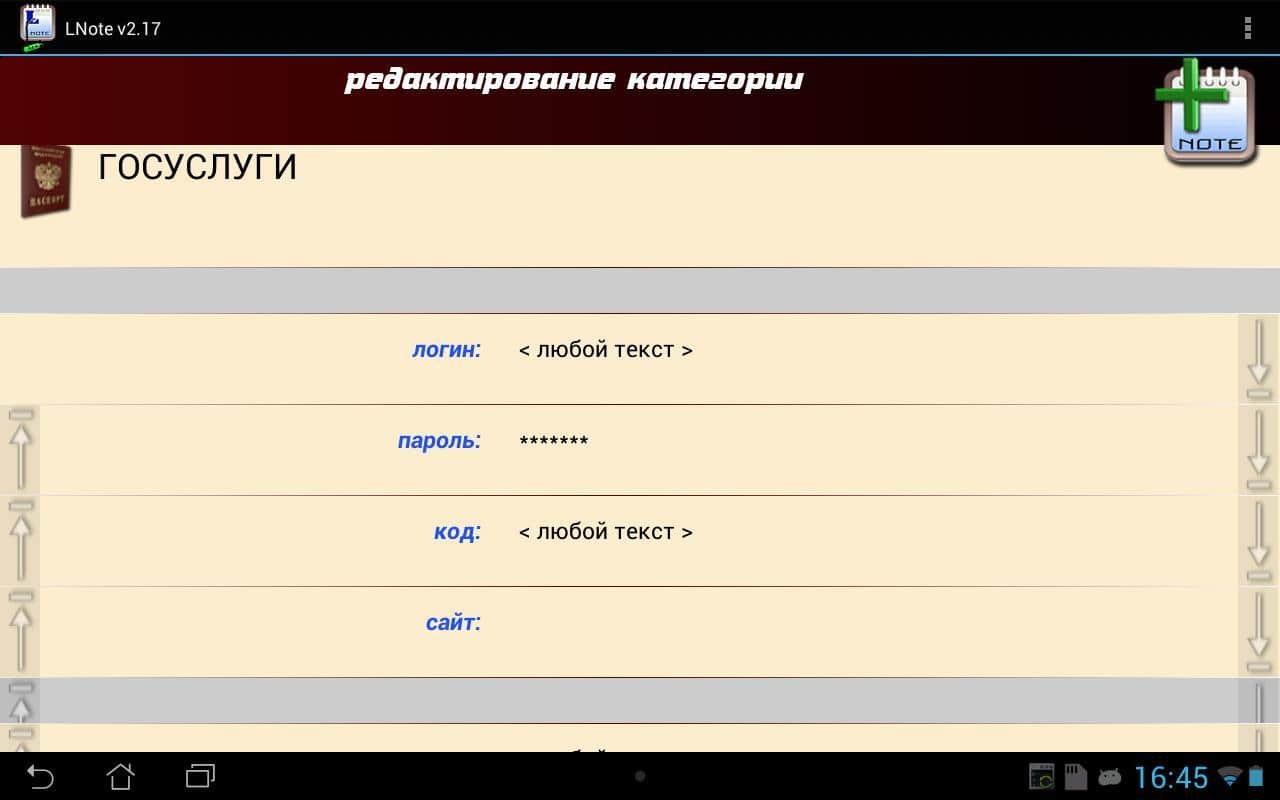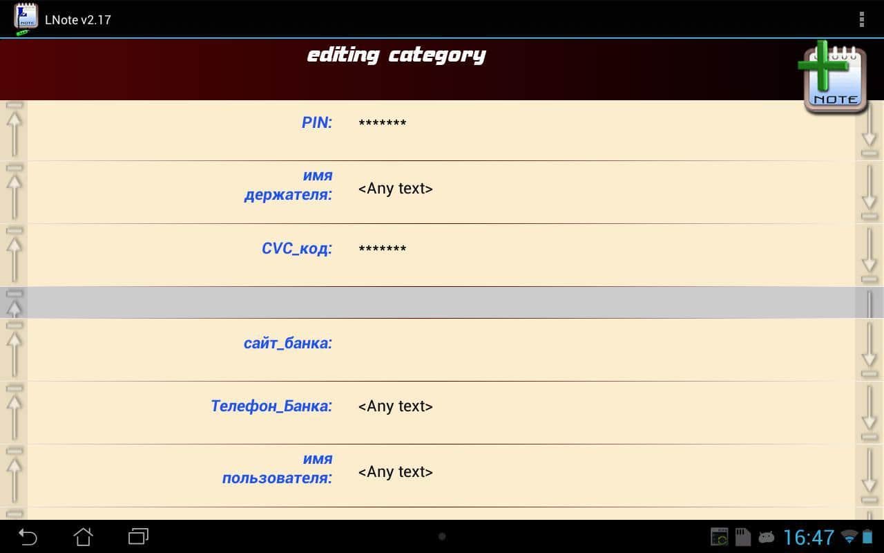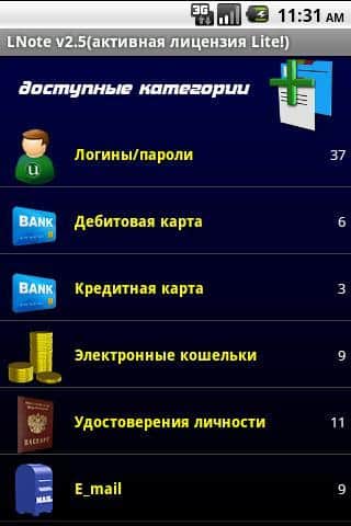 Lnote para Android. Un potente organizador que te permite guardar y organizar cualquier dato en forma encriptada. El programa no requiere acceso a Internet, pero puede sincronizarse con Google Drive, DropBox, etc. Vale la pena mencionar que si olvidas o pierdes la contraseña de acceso al archivo, la recuperación de datos no es posible. Lnote contiene una gran cantidad de características y funciones que te serán útiles.