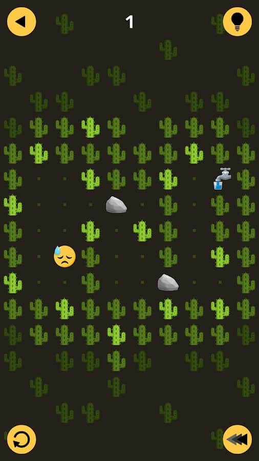 Emotica Logic - emoji - es una de las cosas más importantes creadas por Internet. Sin embargo, este juego está completamente construido sobre estos increíbles símbolos de Internet. Cada rompecabezas representa un mapa dibujado con emociones, en el que hay un objetivo específico que necesita ser alcanzado de una forma u otra. Por ejemplo, llegar al agua en el desierto y no morir de sed. Si no entiendes lo que está sucediendo en la pantalla de tu smartphone, hay pistas creadas para ayudarte a avanzar en el juego.