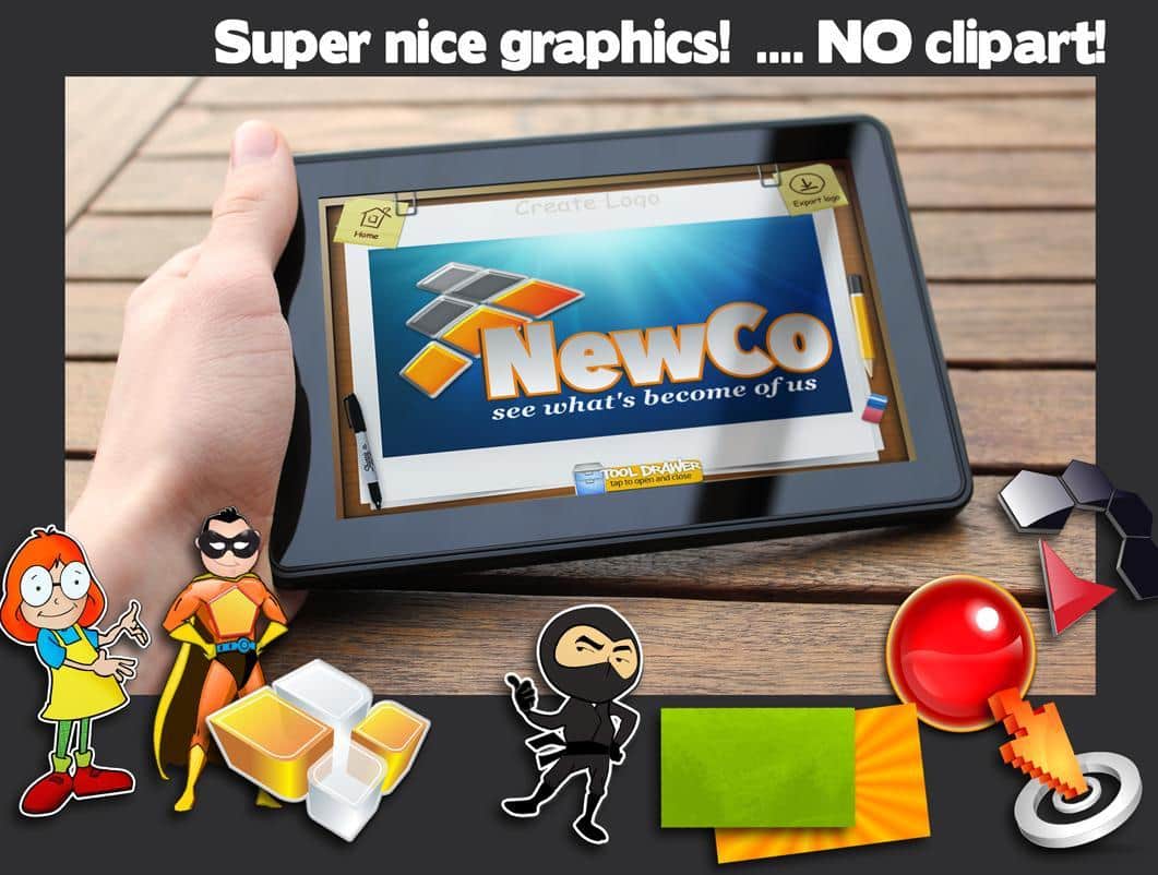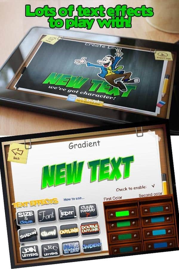 Creador de Logotipos – una buena aplicación para crear logotipos, gráficos e imágenes personalizados en tu dispositivo Android. Desarrollado por Laughingbird Software, proporciona una gran cantidad de fuentes, íconos, varios caracteres y más de 30 plantillas. En una palabra, todo lo que necesitas para un vuelo creativo al crear tu propio proyecto.