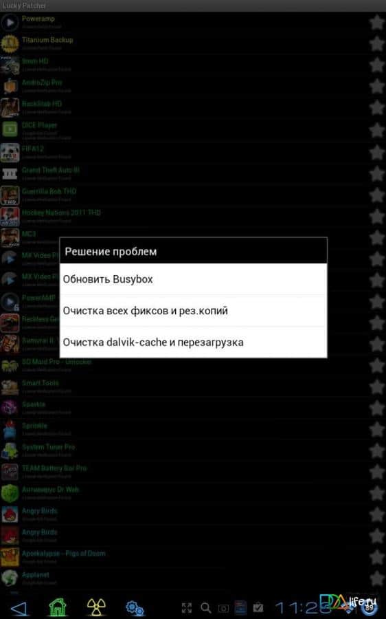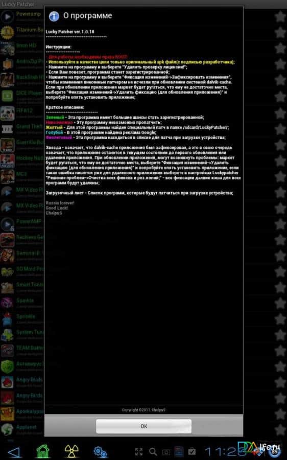 Lucky Patcher (Lucky patcher) – la solución perfecta si de repente necesitas eliminar la licencia de las aplicaciones. Algunos juegos y programas tienen un código estándar de interacción con Google Play, pero una herramienta de protección muy poderosa contra cambios.