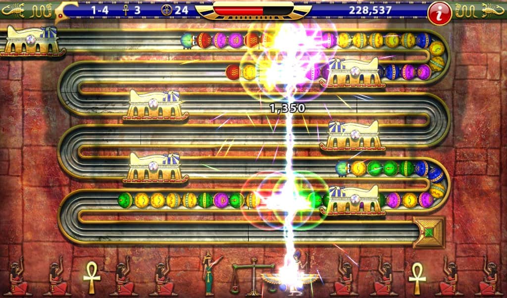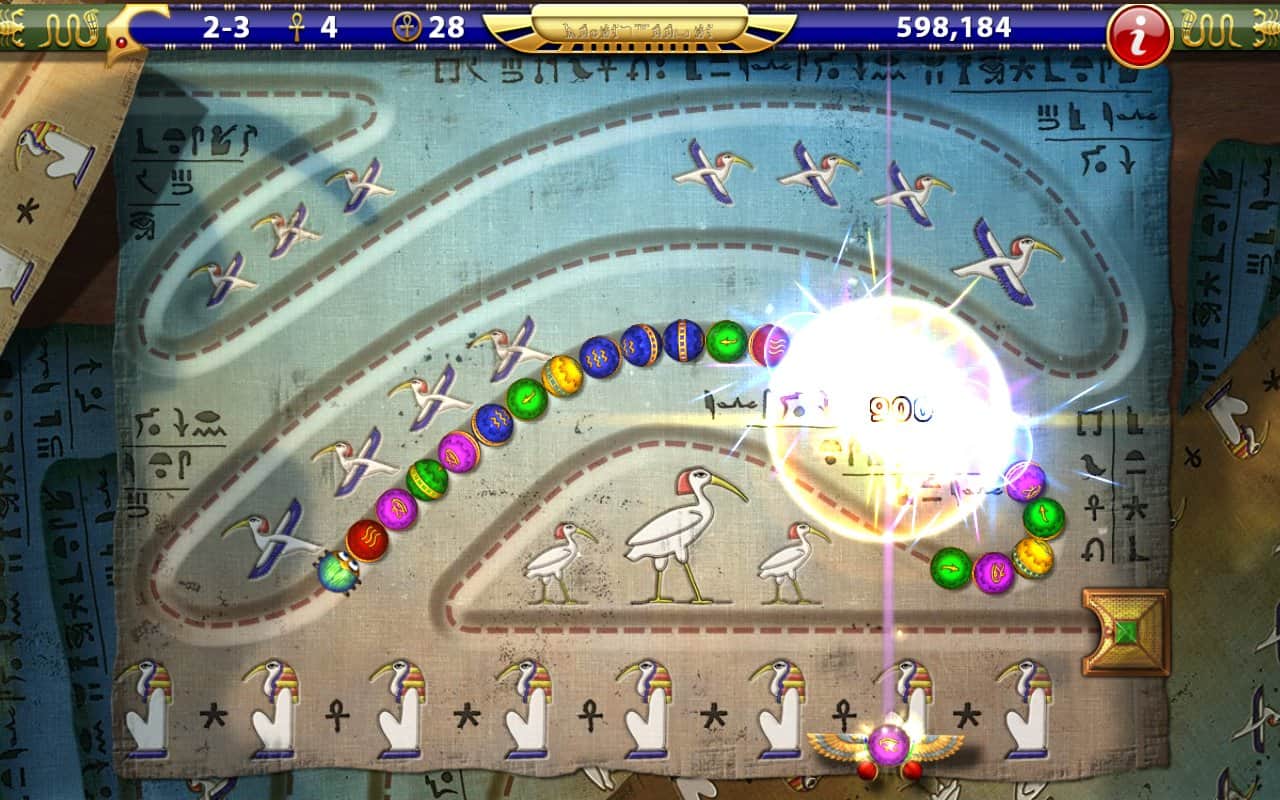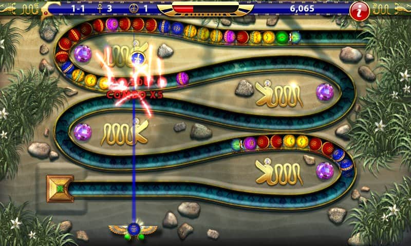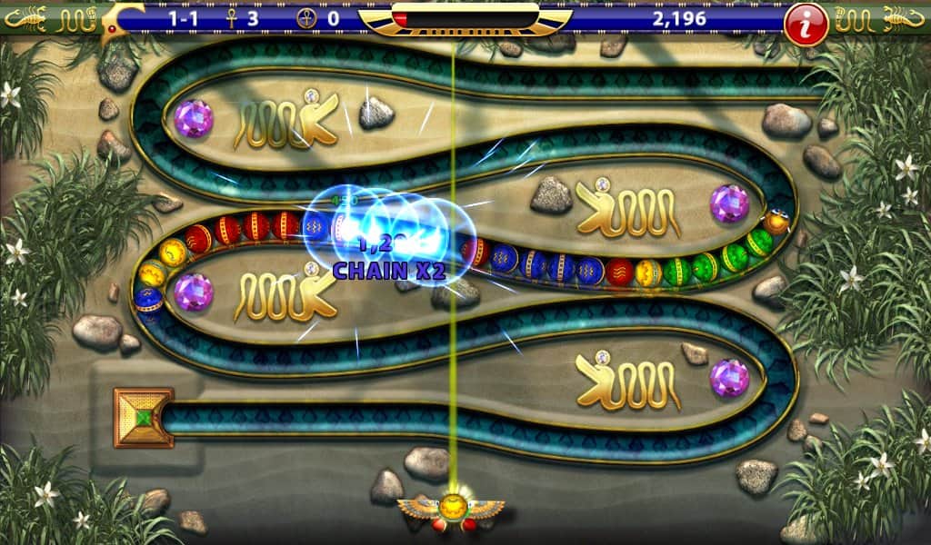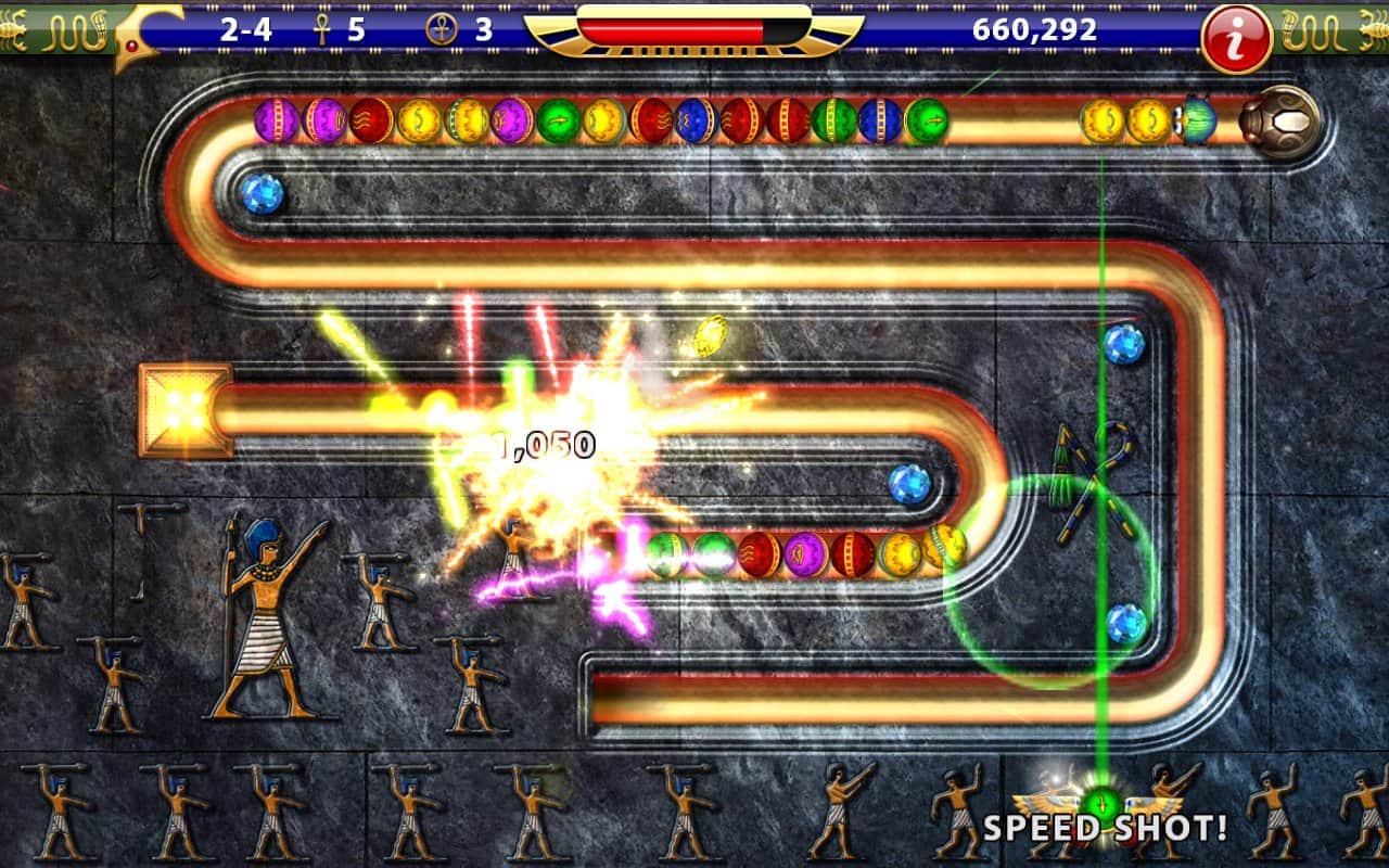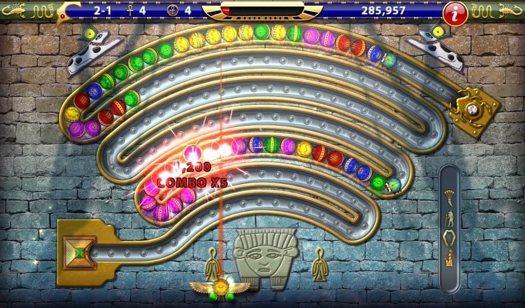 Luxor HD - el famoso juego de rompecabezas al estilo de Zuma ahora está en tu dispositivo Android. El tablero presenta una cadena de bolas multicolores. Tu tarea es disparar desde la "resorte" en este circuito, para recoger una cadena de bolas del mismo color. La cadena ensamblada se quemará, reduciendo así todo el circuito. Tu tarea principal es no dejar que las bolas alcancen la pirámide. El juego tiene una gran jugabilidad y hermosos visuales.