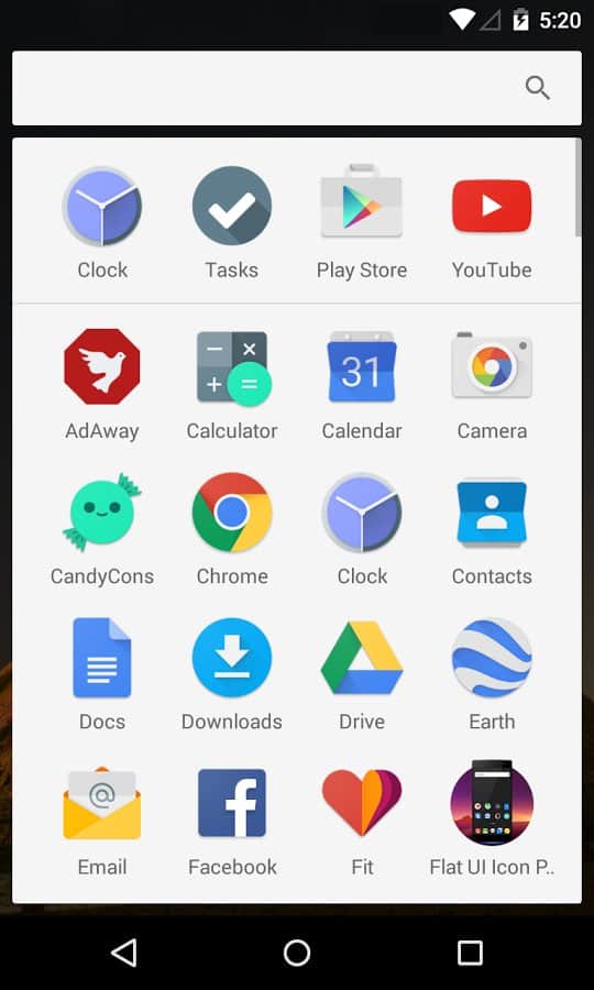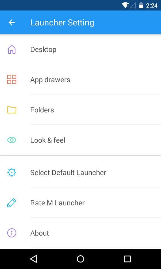 M Launcher Pro-M Marshmallow - Este lanzador fue creado para aquellos que no tienen las actualizaciones de Android 6.0, pero aún les gustaría ver cómo se ve. Así que los artesanos tomaron esta actualización y la incorporaron al lanzador, con soporte para versiones anteriores de Android. En general, lo que puedo decir sobre esta aplicación es que es muy simple, como se pretende, es solo una copia exacta de la nueva versión de Android. Aquí encontrarás todas las funciones y configuraciones estándar para tu dispositivo, desde cambios en el escritorio, hasta el balance de íconos y la edición de categorías,