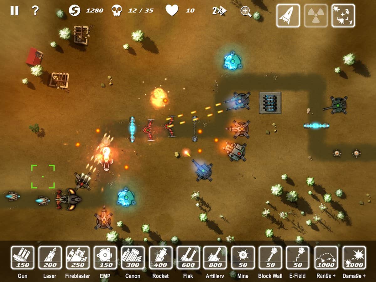 M. A. C. E. Tower Defense Clásico juego de estrategia para Android al estilo de Tower Defense, que reunió una gran cantidad de enemigos y una selección no pequeña de armas. Así que, el juego cuenta con un sistema de mejora de armas bien implementado. El juego tiene lugar en el año 2054 cuando la tierra fue visitada por alienígenas que decidieron conquistar el mundo. Encontrarás varios modos de juego, ocho armas mejorables, una jugabilidad dinámica y gráficos agradables.