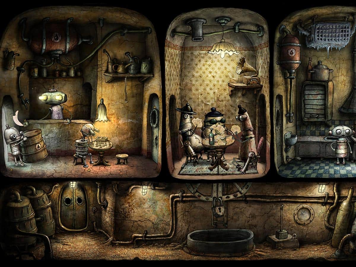 Machinarium - un rompecabezas asombroso y ampliamente conocido sobre una ciudad de mecanismos maravillosamente interesante - Machinarium. Aquí la vida es agitada y cada habitante tiene muchas cosas que hacer, mientras que el pequeño robot arrojado al vertedero no le importa a nadie. Aquí comienzan las sorprendentes aventuras que probablemente no ocurrirán sin ti. Así que, reúne al robot y luego, busca a los abusadores y a la amada, que ha sido secuestrada por desconocidos. Explora la diversa ciudad y sus habitantes, porque cada paso que das es un encuentro con algo nuevo y fascinante, ¡y la curiosidad crea maravillas!