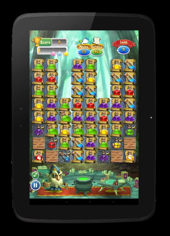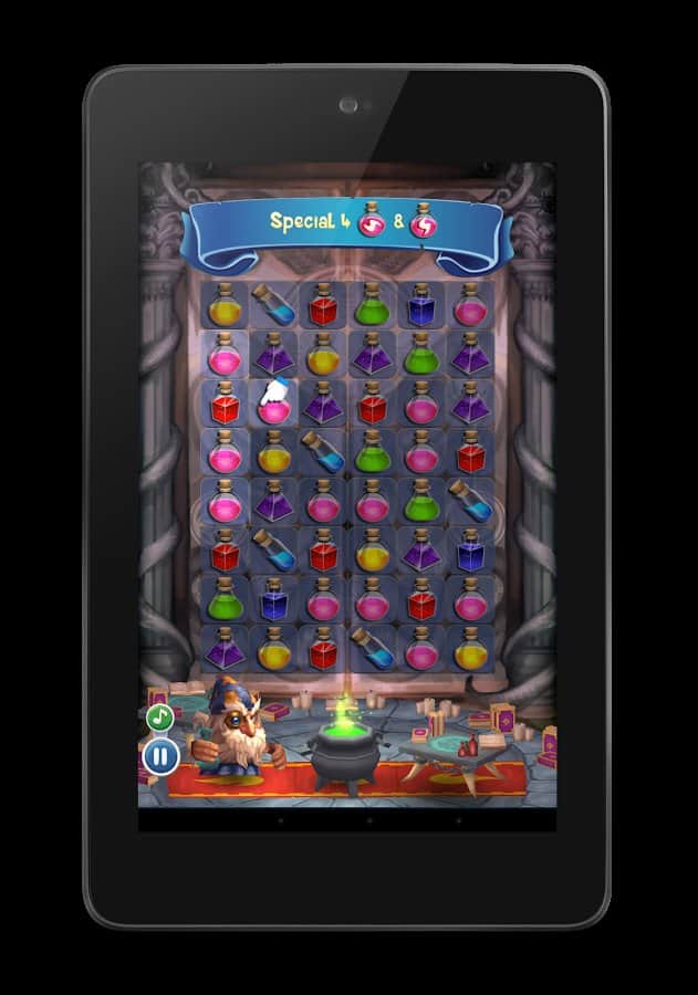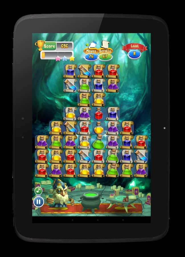 Licuadora Mágica - Eres el mago que elabora pociones mágicas. Este juego es una serie de 3 en fila. Sin embargo, tiene una diferencia especial. Si en la mayoría de los juegos de este género, hay un límite de velocidad. También hay un límite de tiempo, con muy poco. Tendrás que pensar muy rápido. Pero la solución no debe ser solo rápida, sino también muy efectiva. El juego es perfecto si decides pasar el tiempo. Y además, te ayudará a mejorar tu reacción y la velocidad de toma de decisiones.
