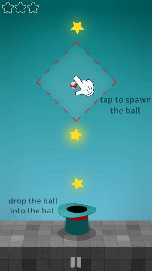 Sombrero Mágico - Puzzle de Física – un rompecabezas basado en la física donde realizarás numerosos trucos. En este juego tienes que realizar diversas acciones para hacer que las bolas entren en el sombrero mágico. A primera vista, el juego parece muy simple, pero cuando comienzas a jugar te das cuenta de toda la complejidad. La bola que controlas rebota contra las paredes, el suelo, los sombreros mágicos y otros objetos. Muestra tu destreza manual e ingenio y coloca la bola en el sombrero, mientras recoges todas las estrellas.