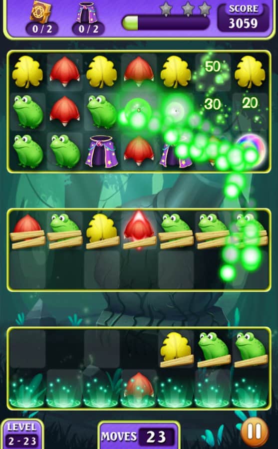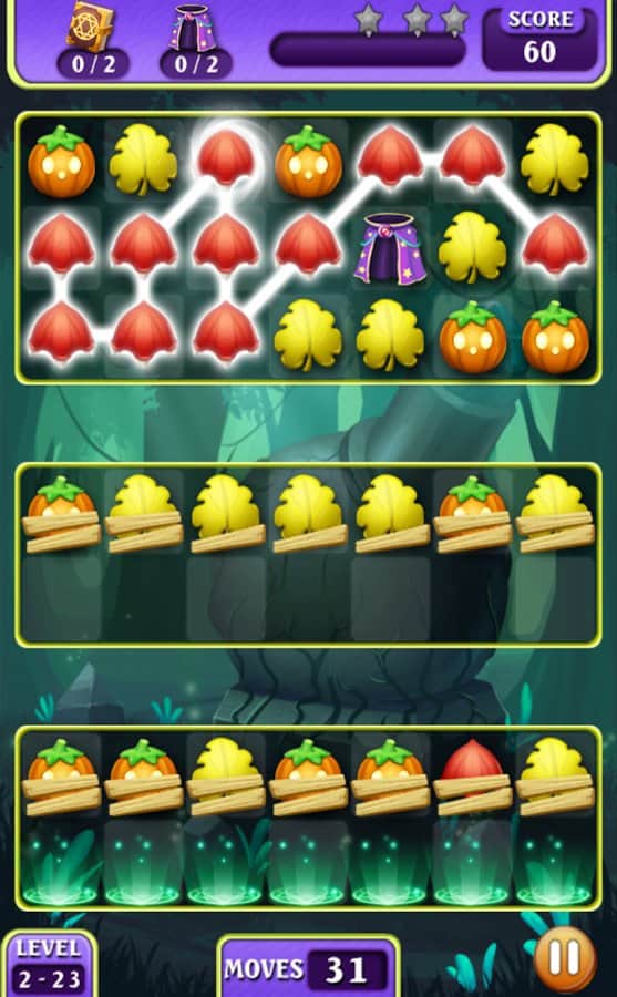 Magic Mania - Excelente rompecabezas colorido del tipo tres en raya. Esta vez jugarás con una bruja. Junto a ella crearás hechizos. El juego tiene varios modos de juego, lo que proporciona una diversidad adicional. Además, el jugador se alegrará de tener 120 niveles. Pero no pienses que es un juego fácil, algunos niveles te harán esforzar mucho tu mente.