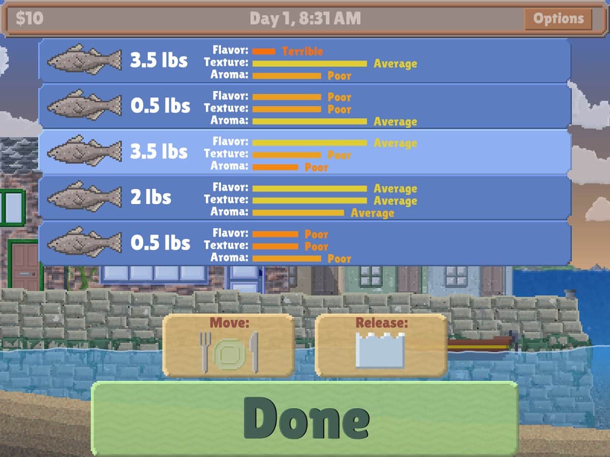 Hombre come pescado - un juego bastante original en el que tienes que tomar el control de tu tienda de pescado, a primera vista, la idea del juego puede parecer bastante ordinaria. Después de todo, tuvimos que gestionar empresas y más grandes, y a veces incluso países enteros, en beneficio del mundo de los juegos móviles. Pero no es tan simple, además de la venta directa de pescado, la construcción y mejora de la tienda también tendrás que encargarte de la adquisición de productos. Sí, exactamente, sube a la barca, reúne el equipo y ve a dar un paseo al lago. El hecho de que puedas vender en tu tienda dependerá de lo que pesques. Por supuesto, el equipo de pesca también se puede mejorar, lo que dará la oportunidad para un desarrollo posterior.