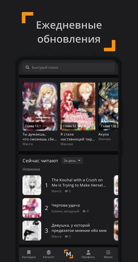 MangaLib - aquí encontrarás todo lo que necesitas para ser un verdadero fan de manga, manhwa, manhua y cómics. Nuestra biblioteca contiene una gran cantidad de títulos que satisfarán incluso a los lectores más exigentes. Sin importar tus preferencias - ya sean aventuras coloridas, emocionantes acciones, divertidas historias románticas o dramas profundos - encontrarás algo de tu gusto con nosotros. Con la búsqueda avanzada en nuestro catálogo, puedes encontrar fácilmente los títulos que te interesan. Y nuestra conveniente aplicación te permitirá leerlos en cualquier lugar y en cualquier momento. ¡Incluso sin internet! Simplemente descarga tu manga favorito y disfruta de la lectura sin conexión.