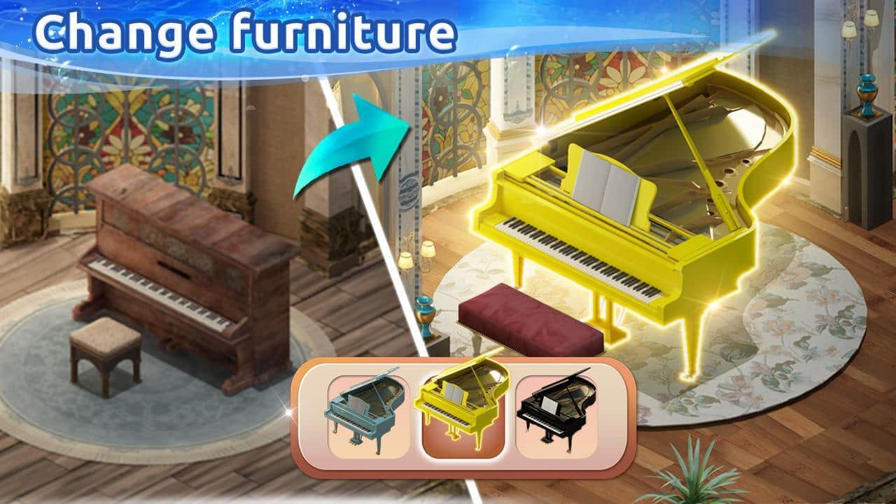Diario de la Mansión – un fascinante juego del género tres en raya para Android, en el que equiparás la mansión. En este juego ayudarás a una joven que heredó la casa y ahora su tarea será renovarla, tanto por dentro como por fuera. Haz coincidir diferentes objetos y supera niveles difíciles probando diferentes muebles en el vestíbulo, la sala de estar y los dormitorios. Recluta la ayuda de bonificaciones en situaciones difíciles y obtén tres estrellas por cada nivel. La dificultad del juego consistirá en que en cada nivel tienes un número limitado de movimientos, así que piensa cuidadosamente en cada movimiento.