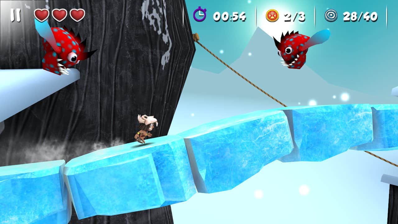 MANUGANU - el juego en Android, en el que controlarás al hombre de la cueva. Corre, salta, trepa cuerdas para recoger la mayor cantidad de monedas y medallones. Encontrarás una gran cantidad de obstáculos como martillos oscilantes, montañas de hielo y lava, logra superarlos todos y llegar a la línea de meta.