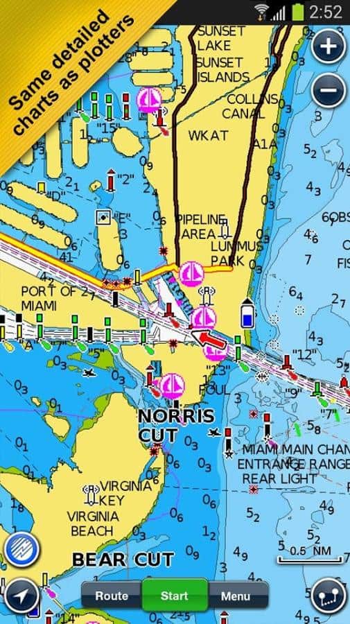 Marino: Europa para smartphones Android del desarrollador Navionics. Gran Navegador que atraerá a pescadores, navegantes y amantes de los deportes acuáticos. Estarás satisfecho con: una gran cantidad de esquemas de GPS, crear y editar rutas, revista virtual, información sobre mareas, corrientes, ciclos de mareas, ciclo lunar y mucho, mucho más. En resumen, todo lo que puede ser útil en el camino de los espacios acuáticos.