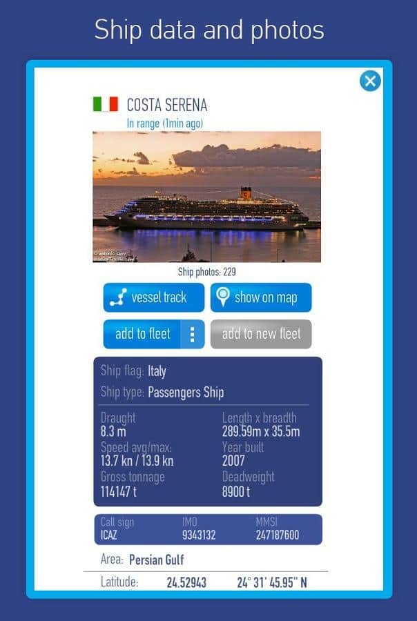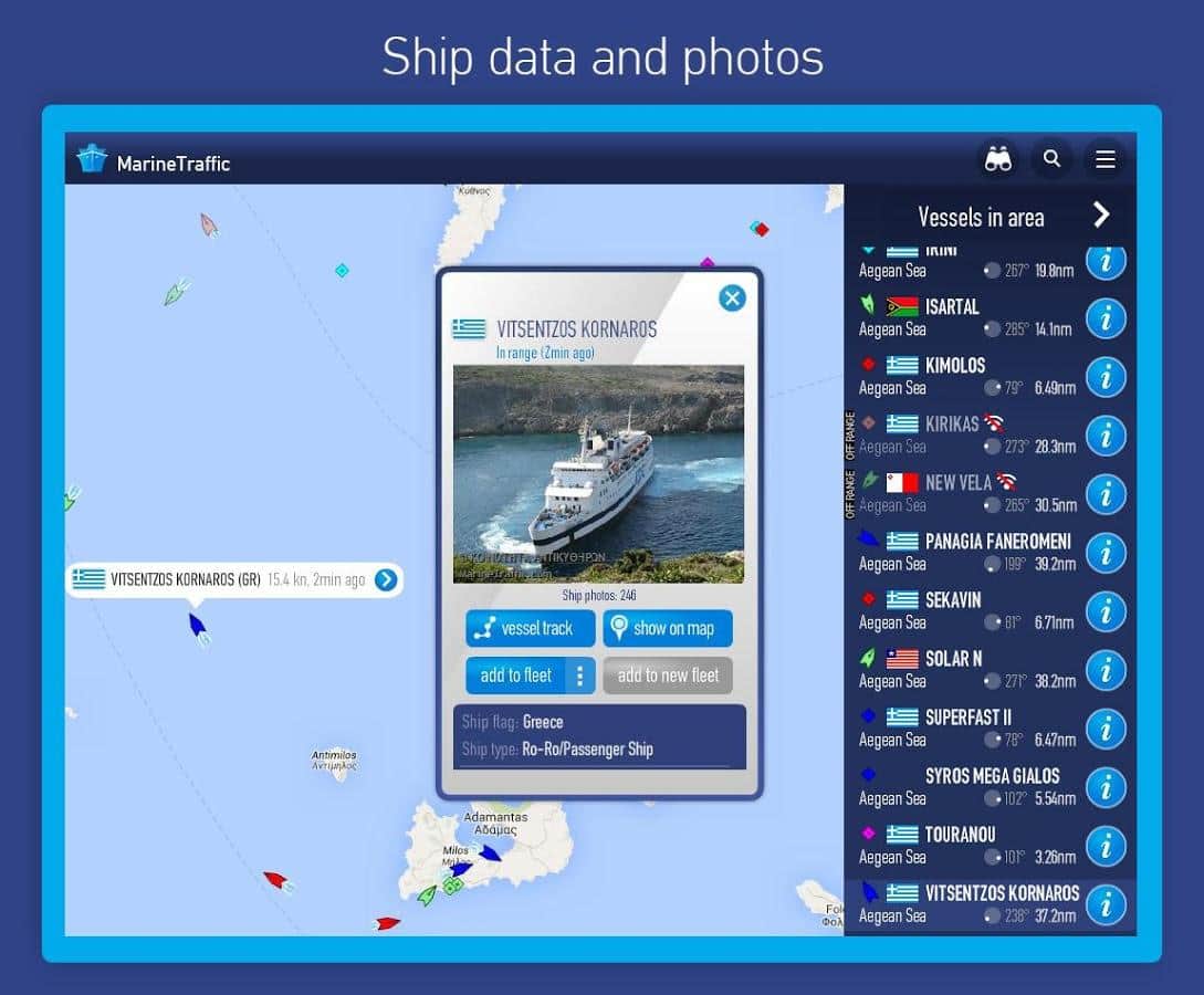 - Gestiona tu lista de barcos ("la flota") asociada con todos los dispositivos y MarineTraffic.com